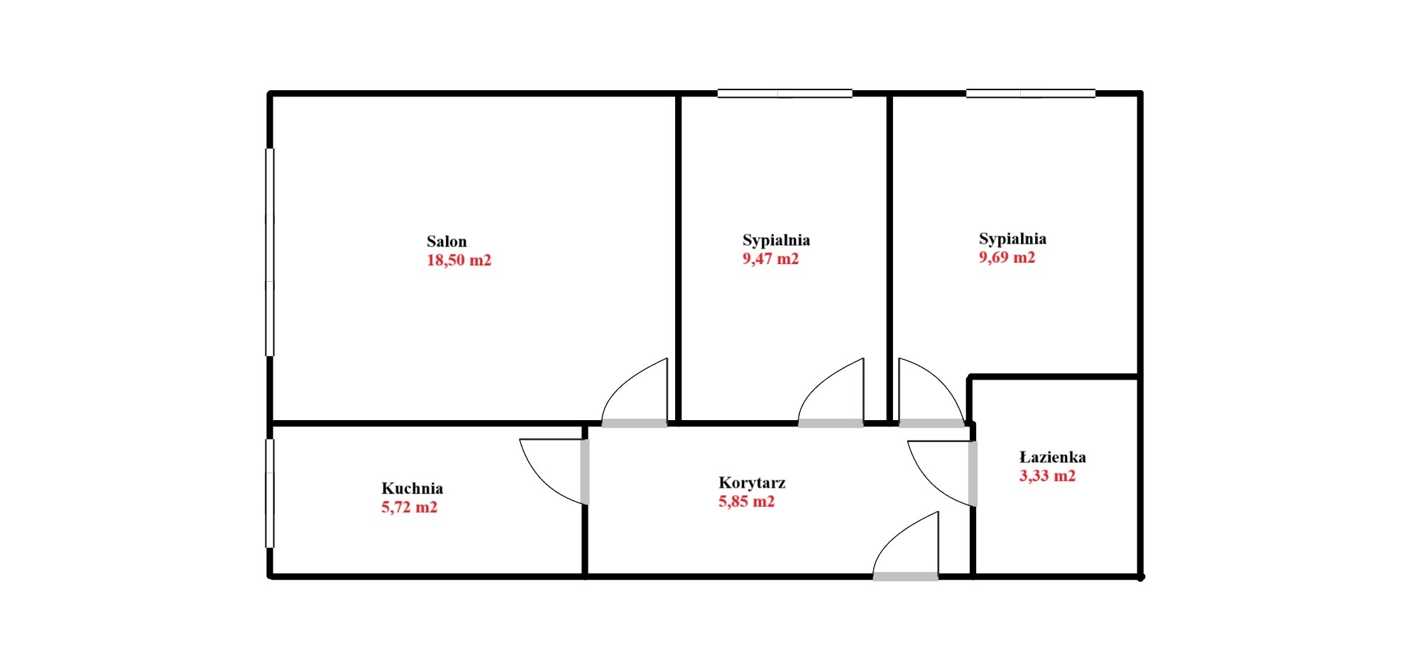 Na powierzchnię 54,90 m² składają się: