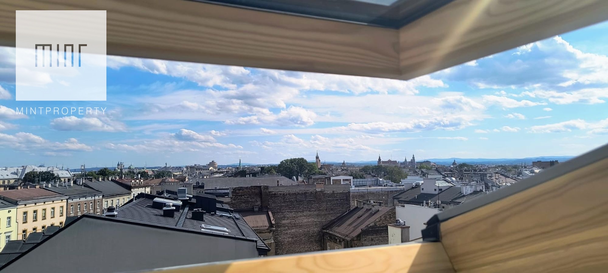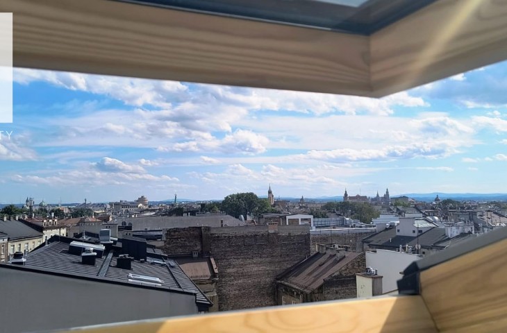 Dzięki południowo- zachodniej ekspozycji apartament jest wspaniale doświetlony oraz gwarantuje niesamowite widoki na dachy i wieże Starego Miasta, Wawel oraz przy dobrej widoczności, Beskidy.