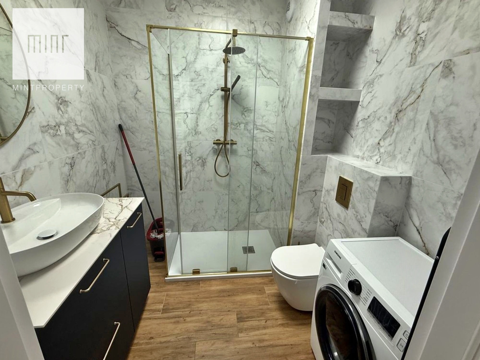 Wszystkie meble w mieszkaniu (kuchnia, sypialnia łazienka, salon) zostały wykonane na wymiar z wysokiej jakości materiałów przez firmę stolarską (nie Ikea itd).