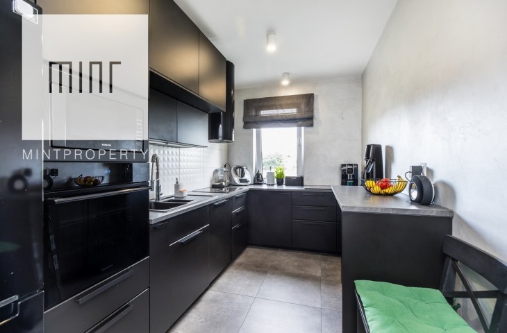 Kuchnia została w pełni wyposażona w lodówkę, płytę grzewczą, piekarnik, zmywarkę, mikrofalówkę oraz okap.