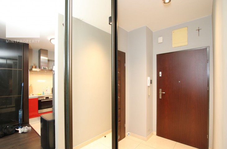 Mieszkanie w pełni wyposażone, zadbane. Na przedpokoju oraz salonie znajdują się pojemne szafy. W łazience ogrzewanie podłogowe.