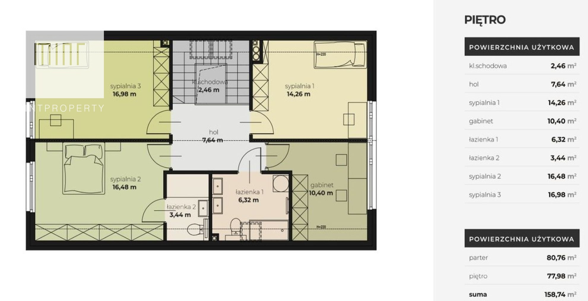 Dom został wykończony w standardzie deweloperskim, z dodatkowymi udogodnieniami takimi jak: