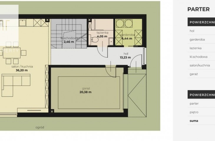 Działka o powierzchni 715m2. Teren wspólny 1040m2.