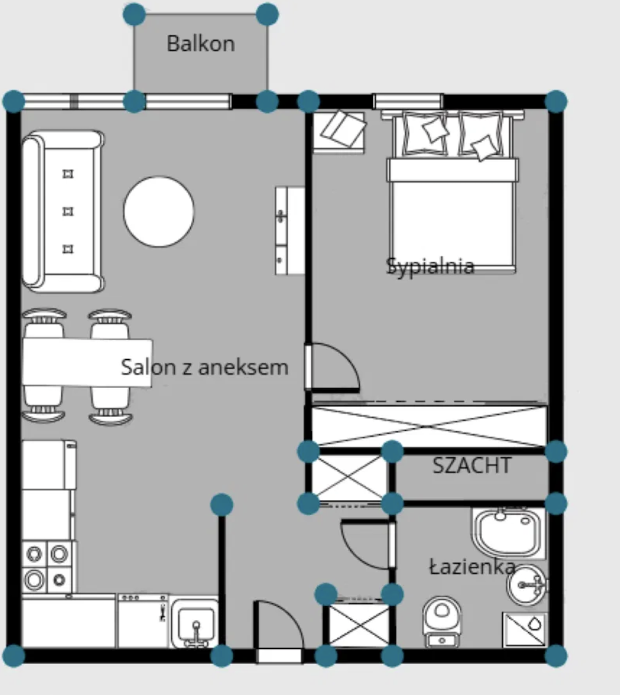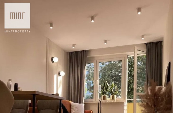 Mieszkanie przeszło generalny remont, obejmujący: wymianę instalacji elektrycznej i wodno-kanalizacyjnej, wykonanie wylewek i gładzi, nowe płytki gresowe w łazience i korytarzu, odnowiony dębowy parkiet w salonie z aneksem, wysokiej klasy panele w sypialni, efektowną ścianę ozdobną i strefowe oświetlenie, nowe drzwi wewnętrzne na ościeżnicach regulowanych.
