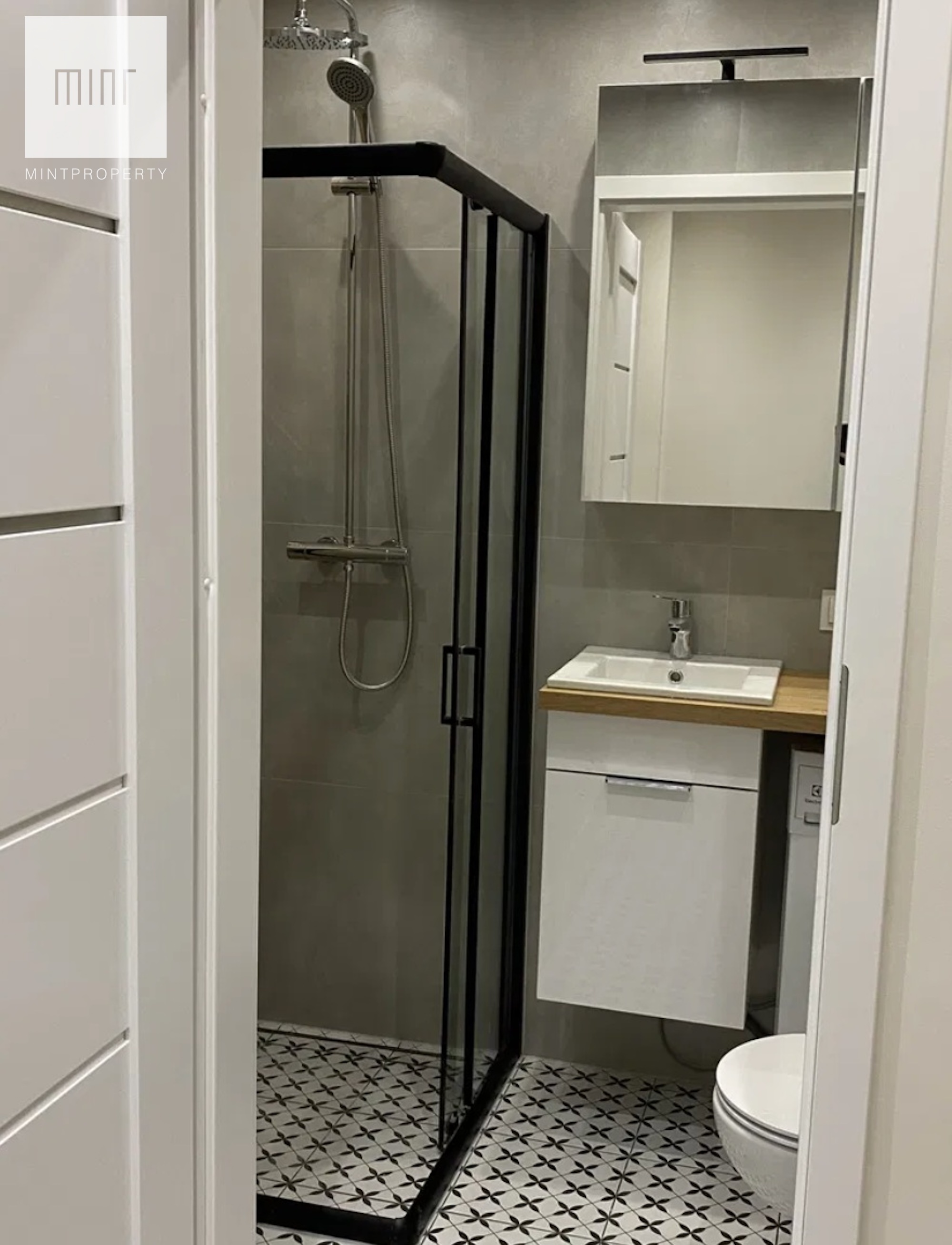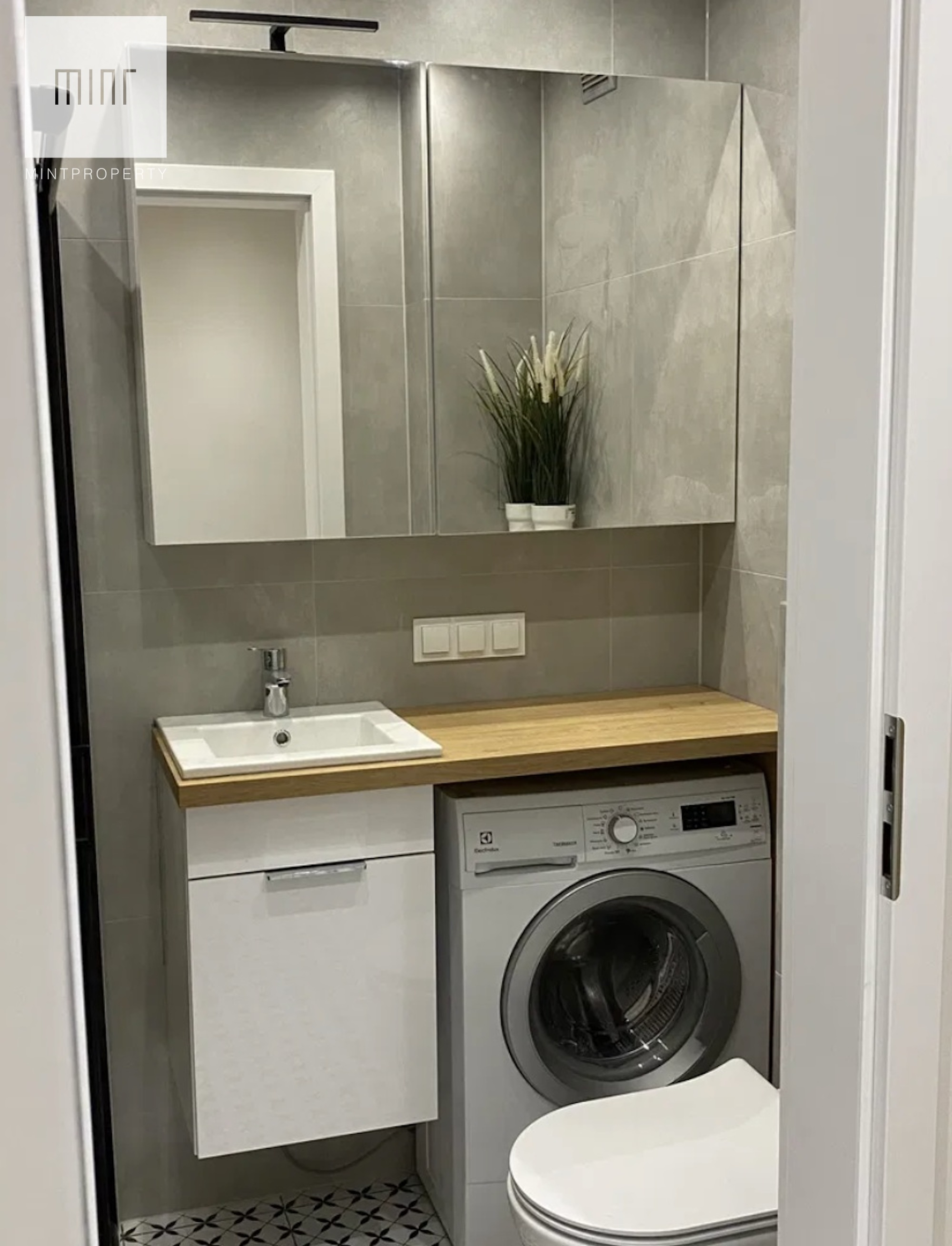 Łazienka została w pełni wyposażona, a kuchnia wykonana na wymiar, z nowoczesnym sprzętem AGD marki Electrolux oraz stołem jadalnianym dopasowanym kolorystycznie do zabudowy. Cena kompletu AGD i mebli ruchomych wynosi 10 000 zł.