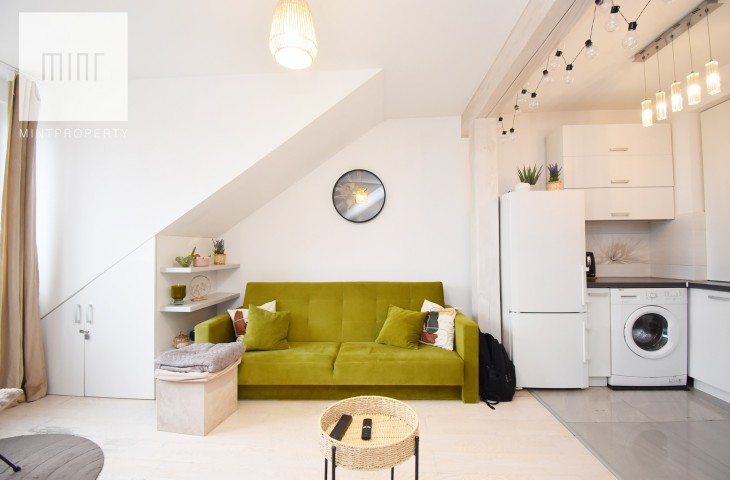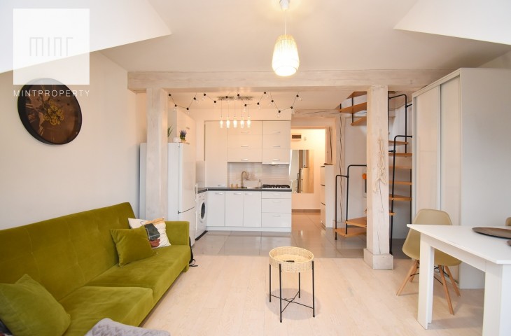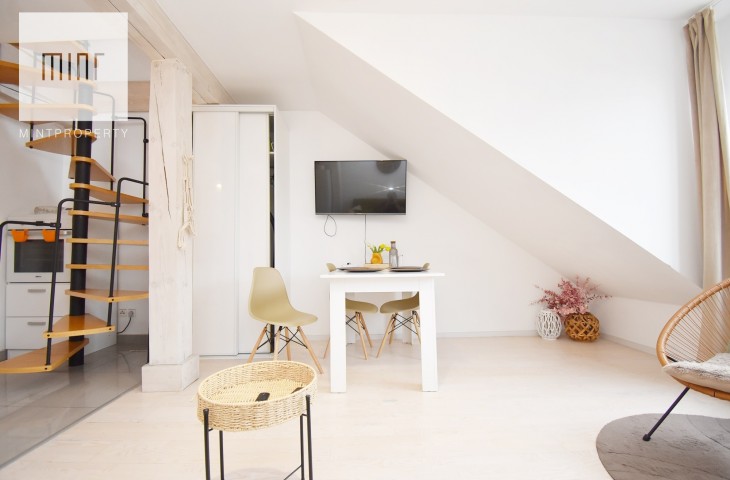 Lokal do zamieszkania. Wynajmowany przez ostatni rok pod najem krótkoterminowy. Kamienica z 1911 roku, nadbudowa w której znajduje się lokal zrobiona w 2011 roku. Na podłogach panele i terakota. Wysokość pomieszczeń 260 cm. Ogrzewanie własne gazowe- piec dwufunkcyjny. Klimatyzacja.