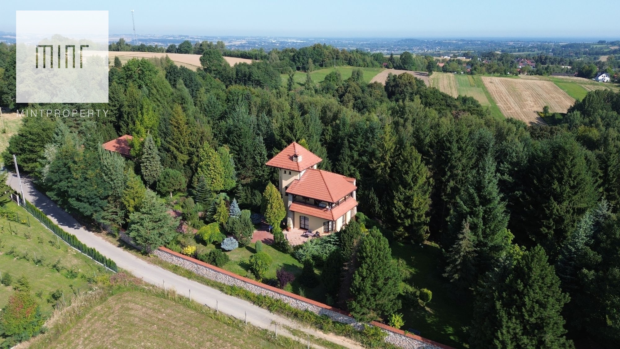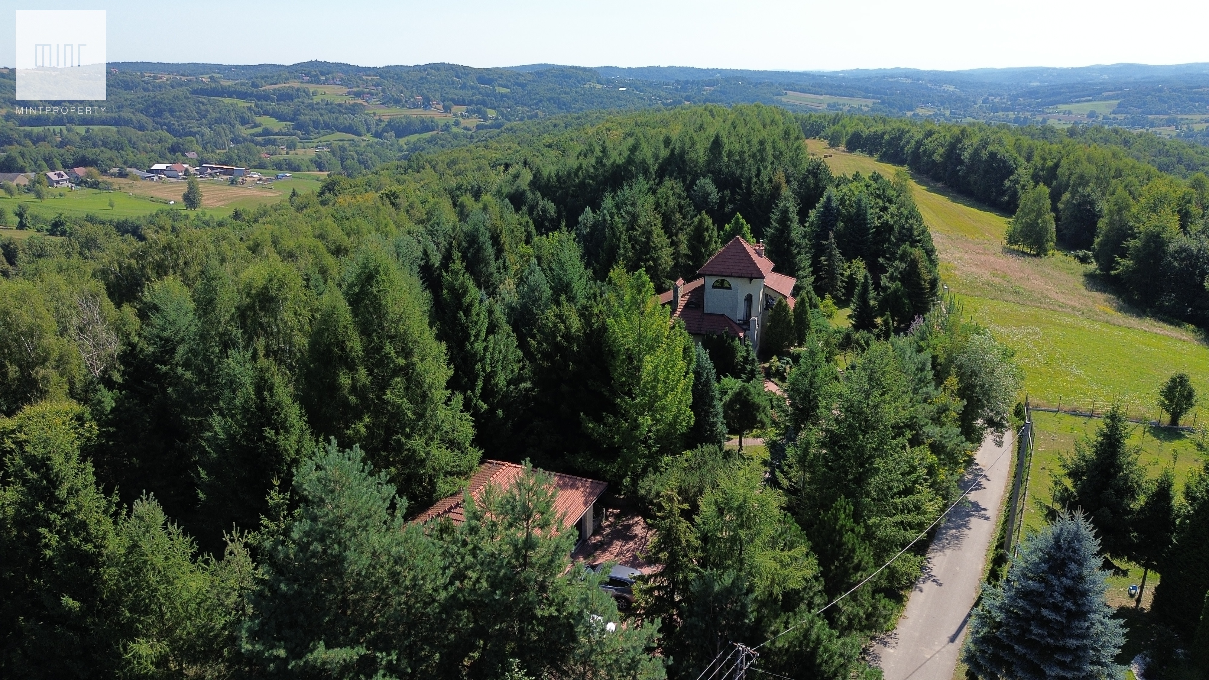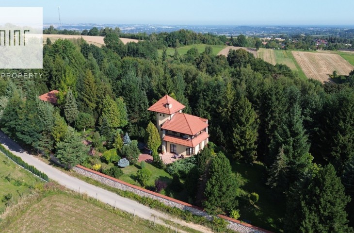 Mint Property ma przyjemność przedstawić Państwu wyjątkową posiadłość na sprzedaż, zlokalizowaną na szczycie góry otoczoną ogrodem i lasem z przepięknym i unikatowym widokiem na krajobraz pogórza Wiśnickiego i Beskidu Wyspowego.