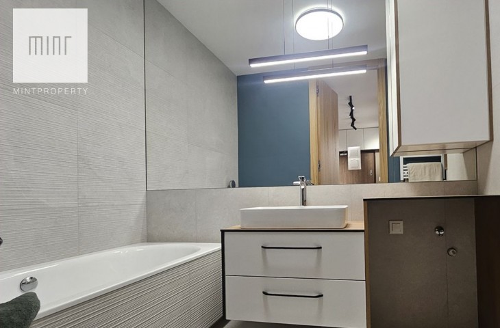 Mieszkanie zostało zaprojektowane przez pracownię architektoniczną i jest gotowe do zamieszkania już dzień po zakupie. Część dzienna jest wyposażona w klimatyzację.