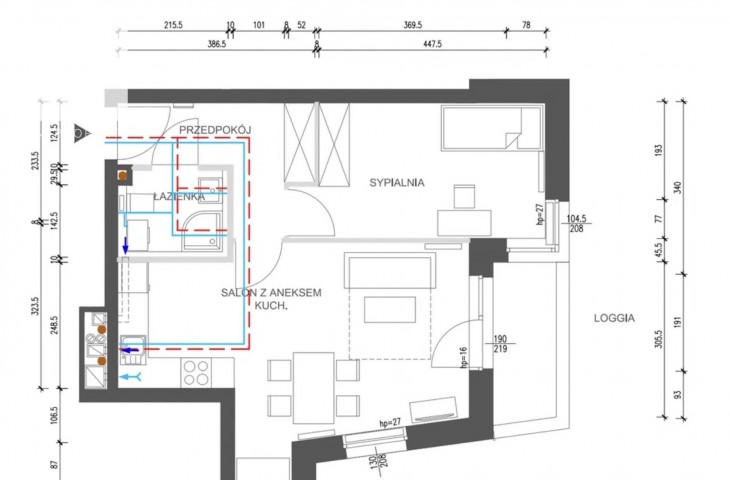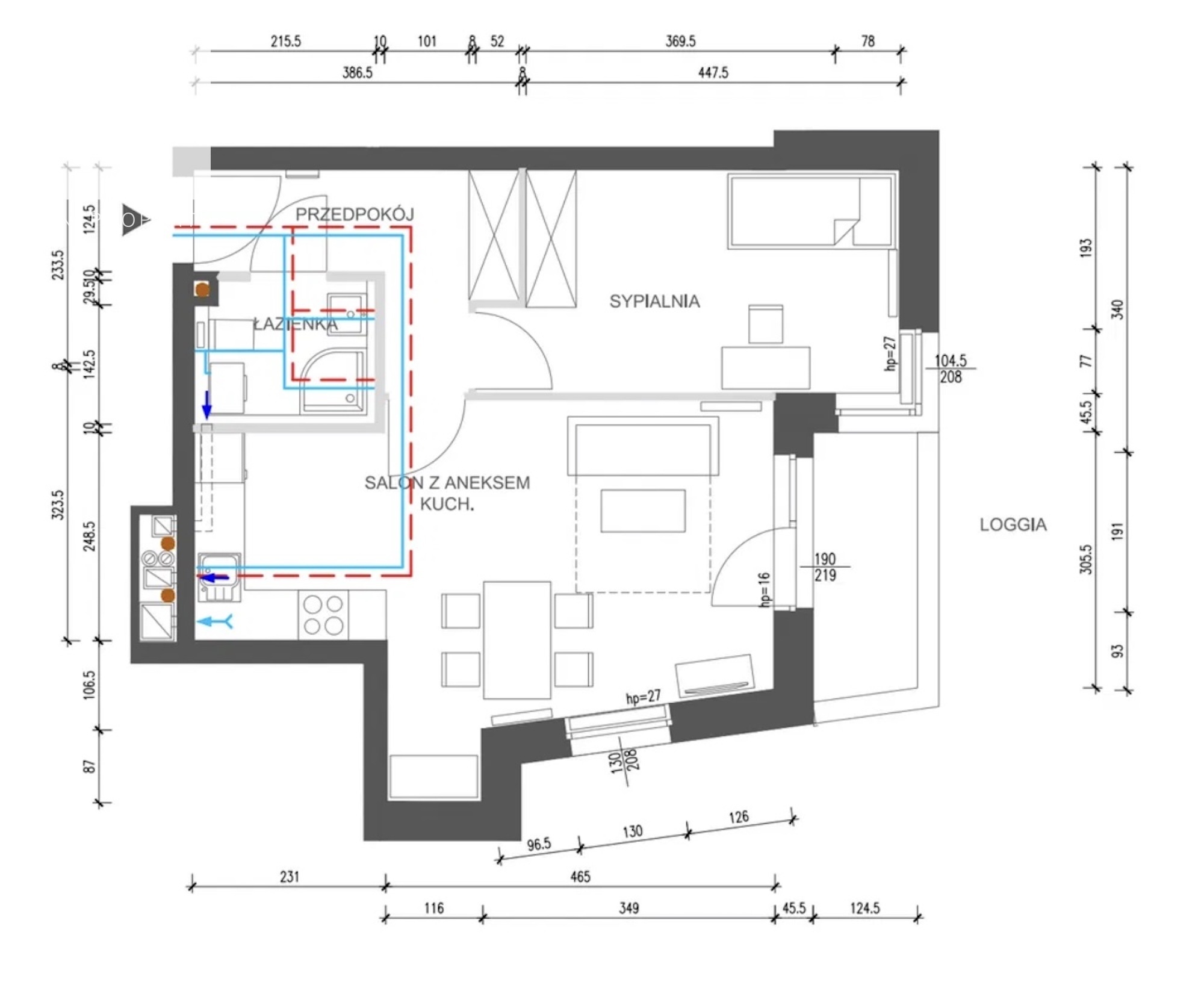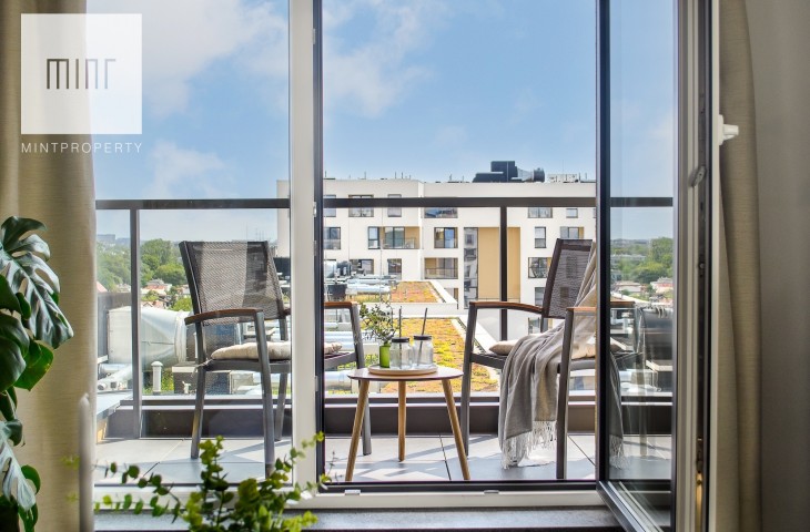 Do lokalu przynależy loggia o powierzchni ok. 3 m², z której rozpościera się panoramiczny widok na miasto.