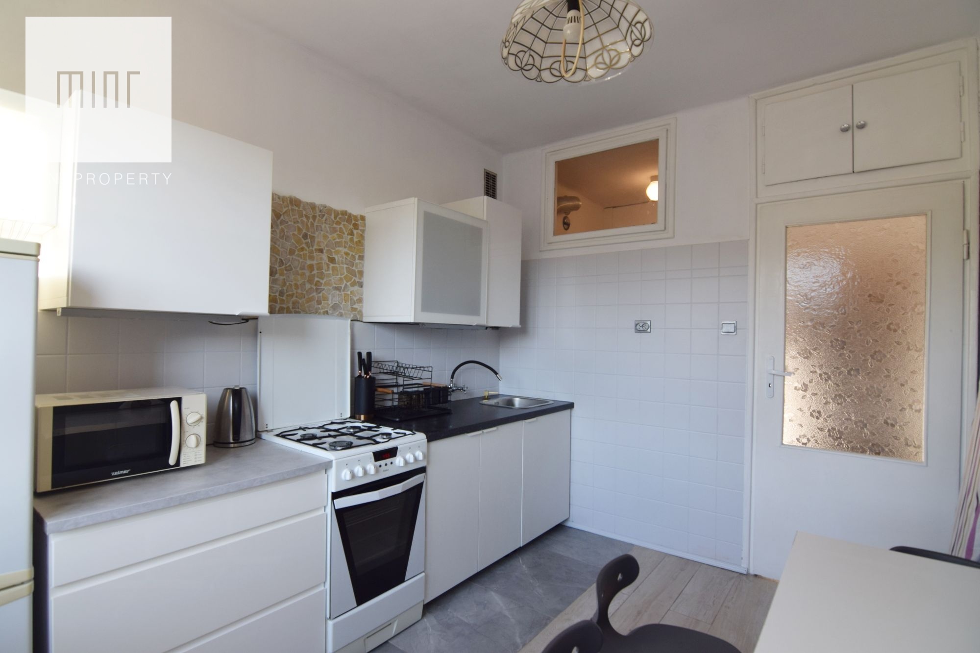 Mieszkanie jest gotowe do zamieszkania, umeblowane i wyposażone w sprzęt AGD (kuchenka gazowa, lodówka, mikrofalówka, piekarnik, pralka). Ogrzewanie i ciepła woda pochodzą z sieci miejskiej.
