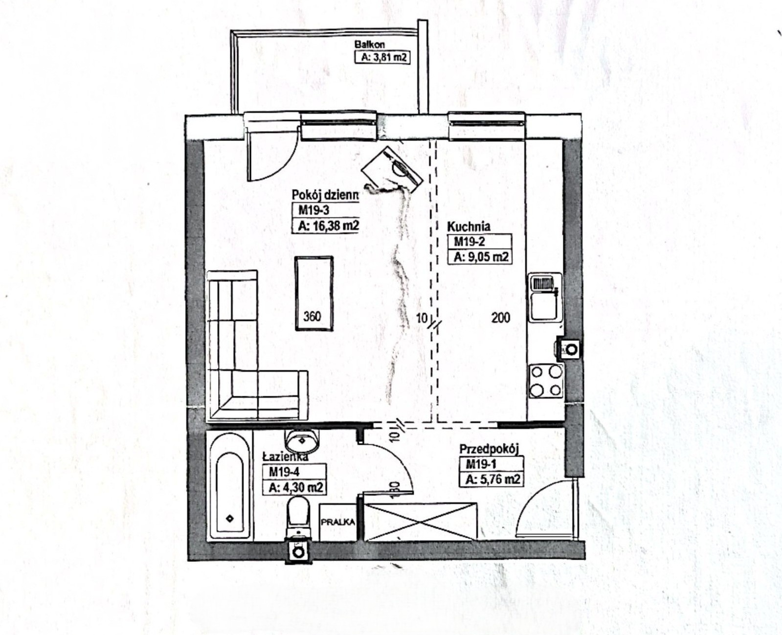 Dodatkowo, do nieruchomości przynależy balkon o powierzchni 3,81 m2. Ekspozycja południowa. Rozkład mieszkania przedstawia rzut załączony do oferty. Wysokość mieszkania 2,5 m.
