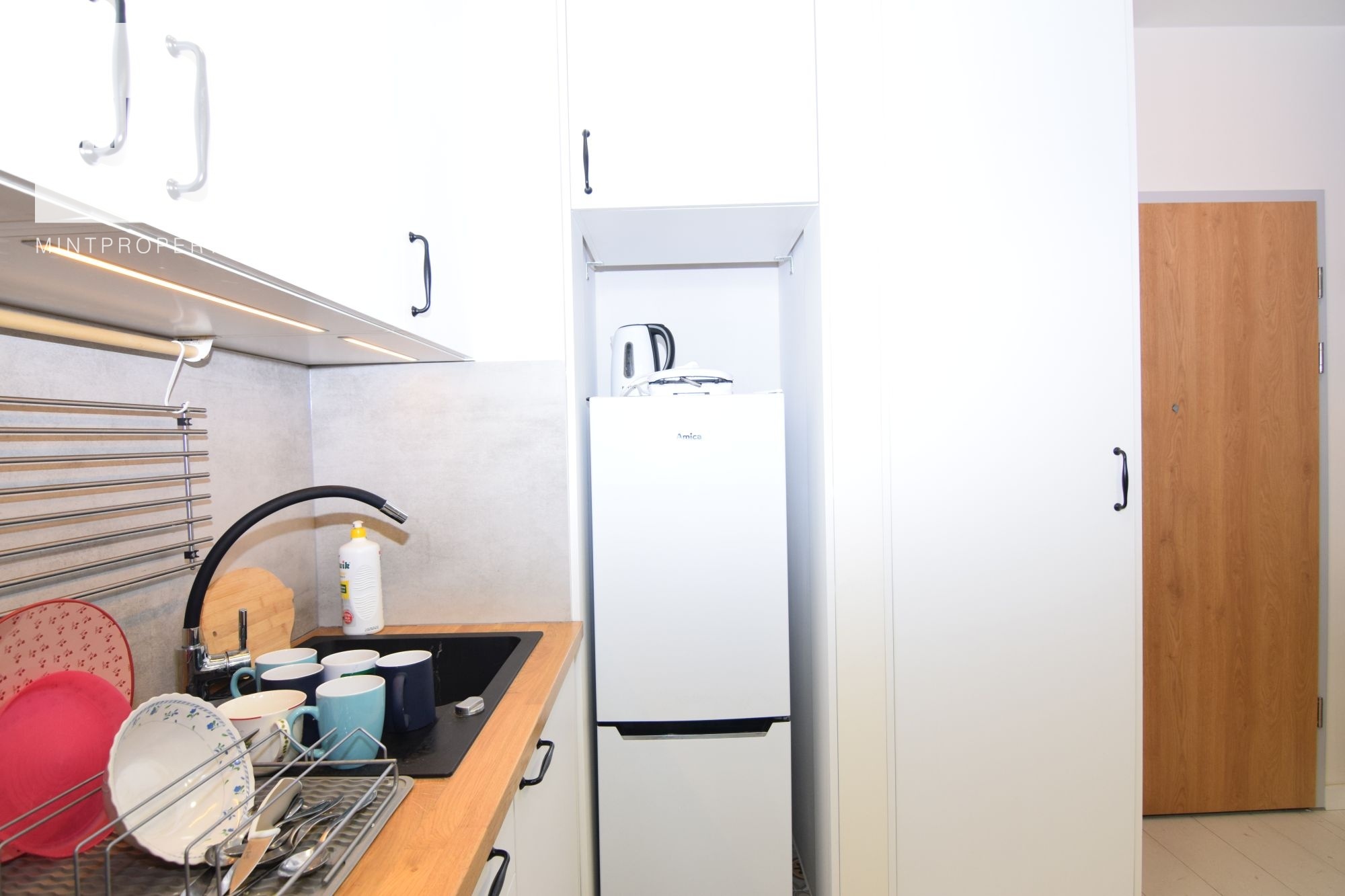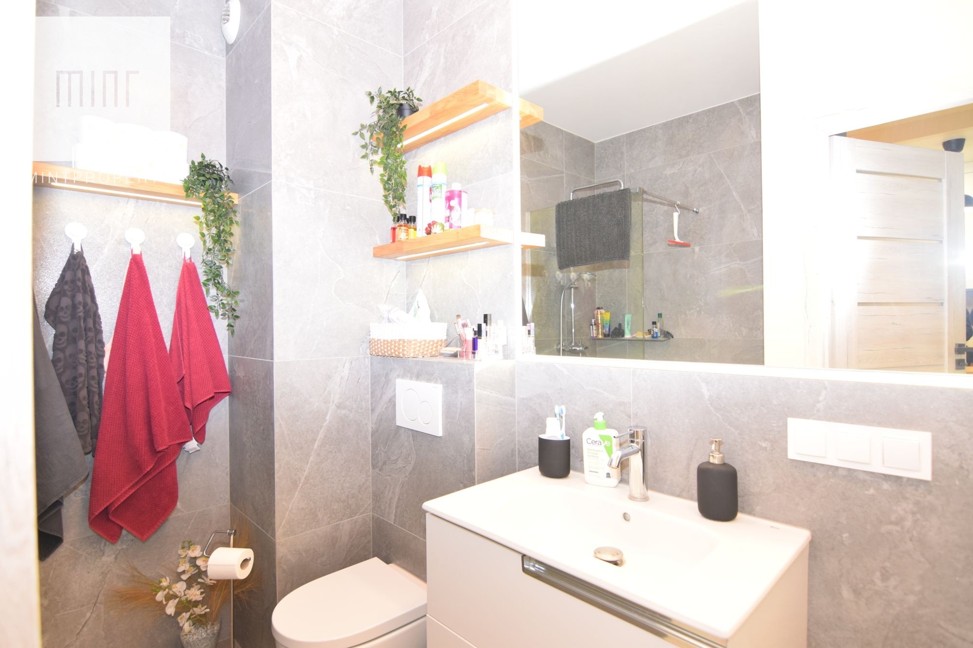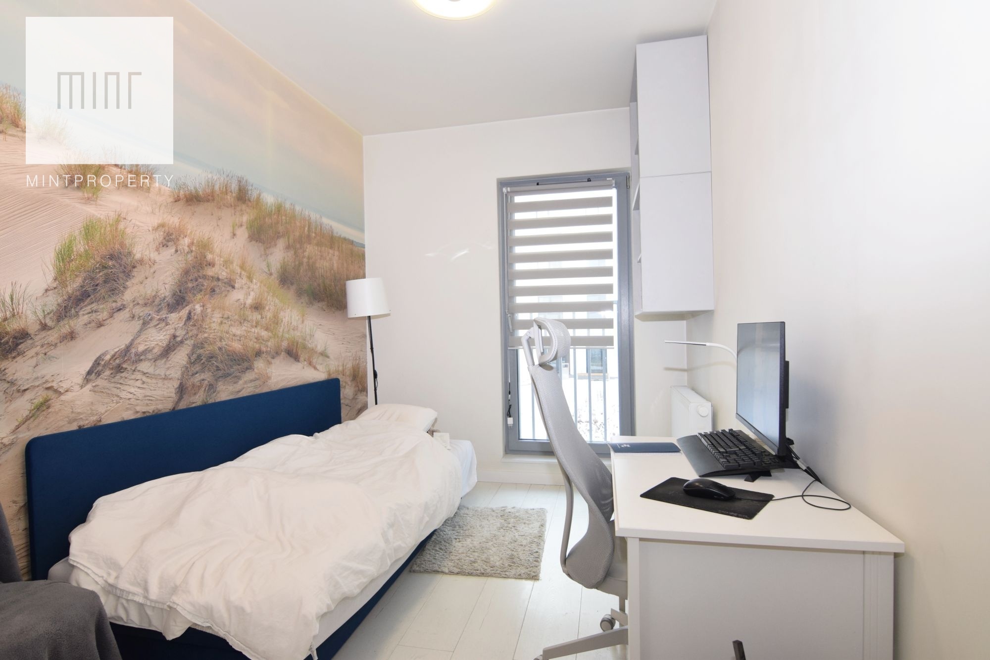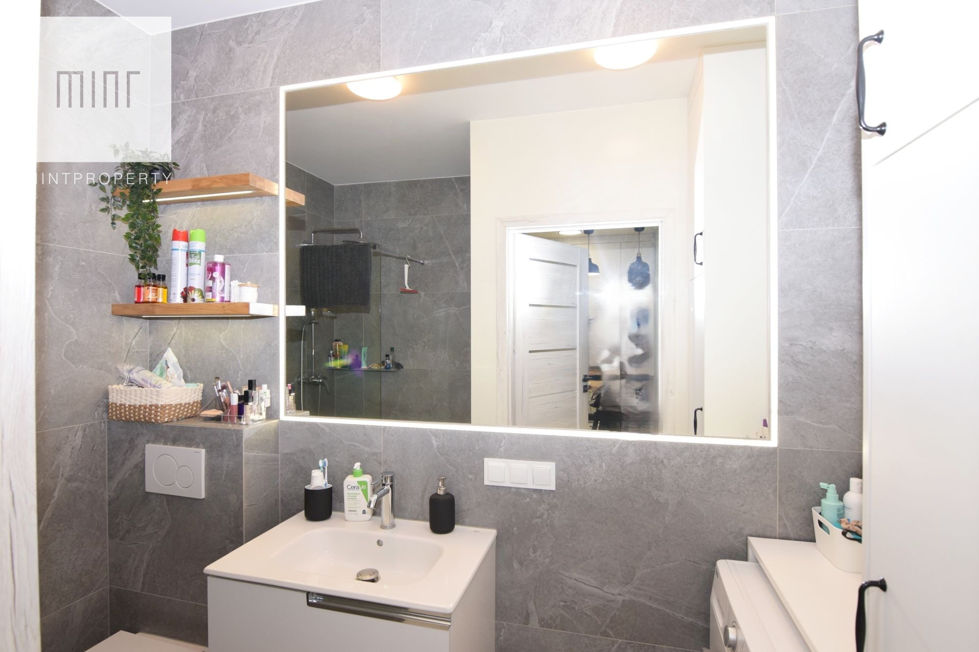 Mieszkanie jest wykończone w wysokim nowoczesnym standardzie, gotowe do wprowadzki. Zarówno kuchnia jak i sprzęt AGD (zmywarka,lodówka,kuchenka,piekarnik) są w zabudowie, a w cenę nieruchomości wliczone jest również umeblowanie.