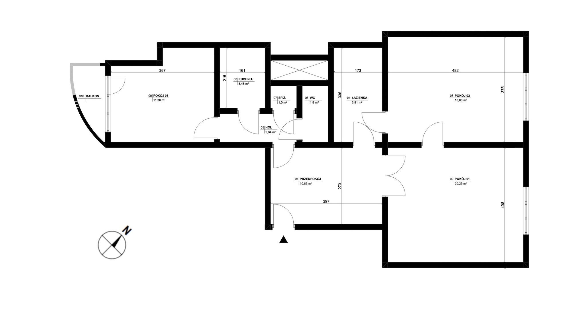 Nieruchomość o powierzchni 77,60 m² przeznaczona jest do generalnego remontu, co daje nowemu właścicielowi możliwość dowolnej aranżacji przestrzeni oraz dostosowania układu pomieszczeń do indywidualnych potrzeb.