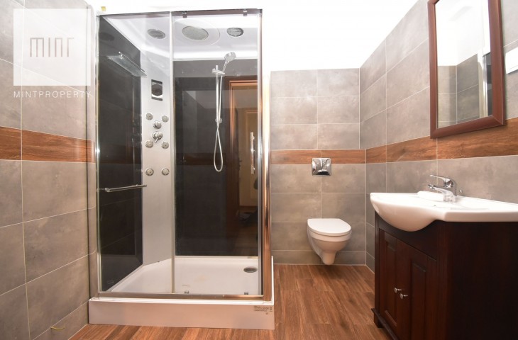 Ogrzewanie i ciepła woda z sieci miejskiej. Czynsz administracyjny wynosi ok. 350 PLN. Dodatkowo prąd według zużycia