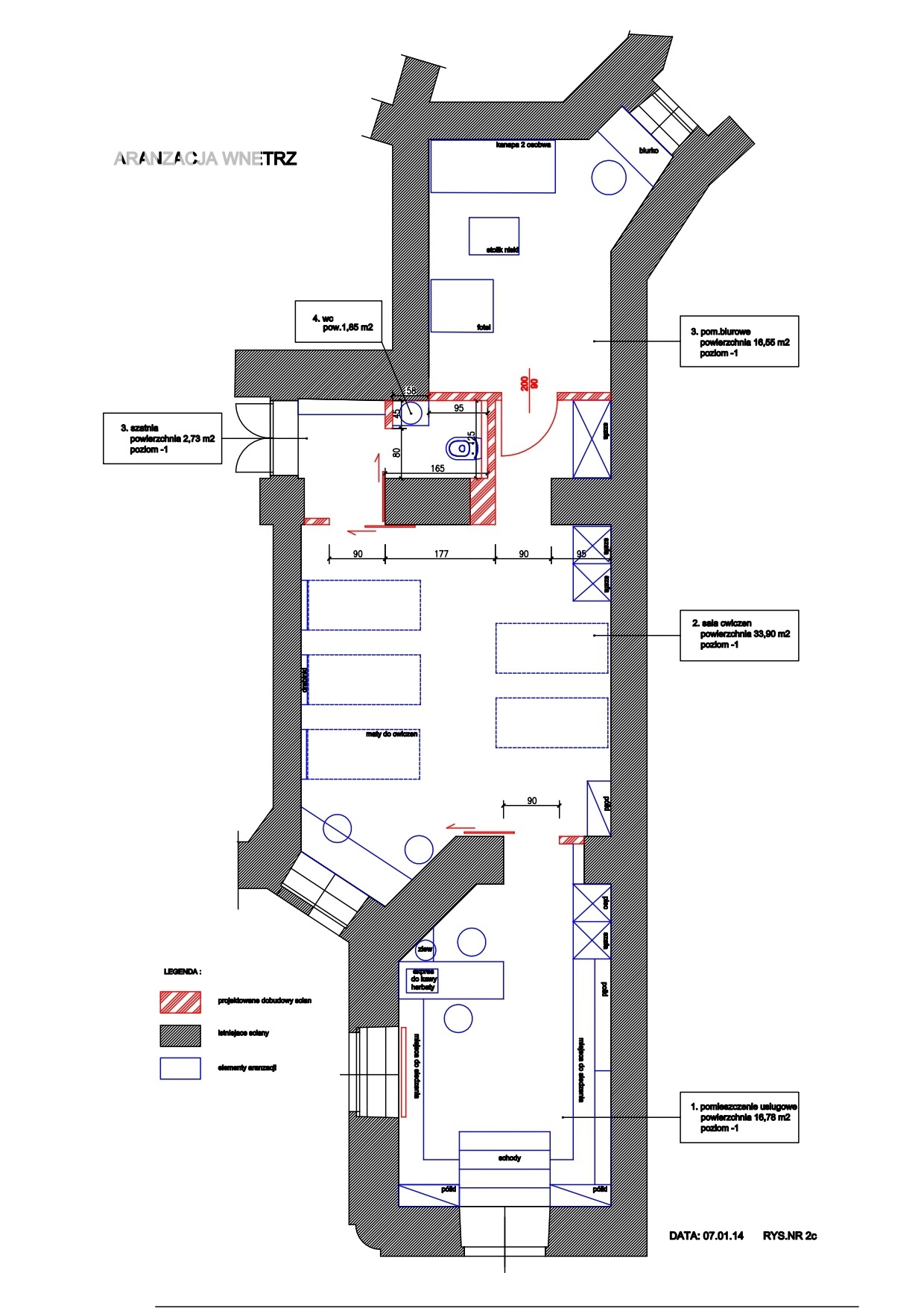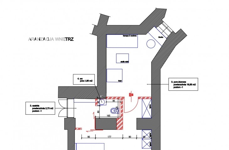 Lokal znajduje się na parterze. Składa się z trzech pomieszczeń, w każdym pomieszczeniu są duże okna PCV. Wysokość lokalu 3 m. Ogrzewanie podłogowe(wodne). Wnętrze lokalu utrzymane jest w bardzo dobrym stanie.