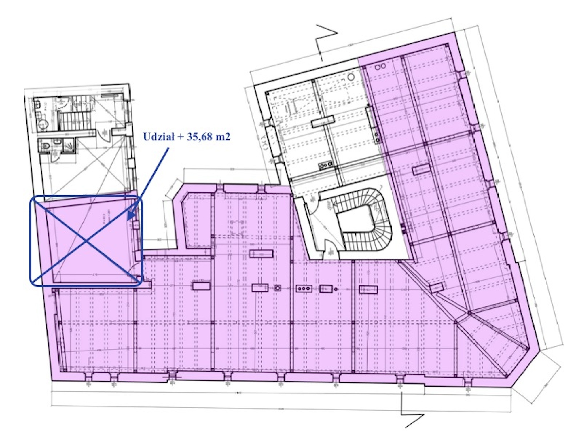 Lokal o powierzchni 349,82 m2, posiada osobną Księge Wieczystą, oznaczony jako lokal niemieszkalny.