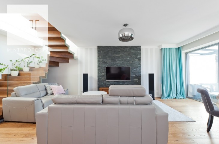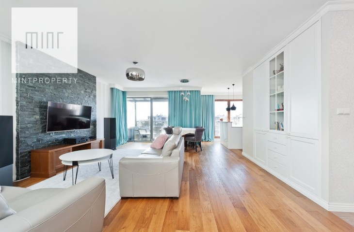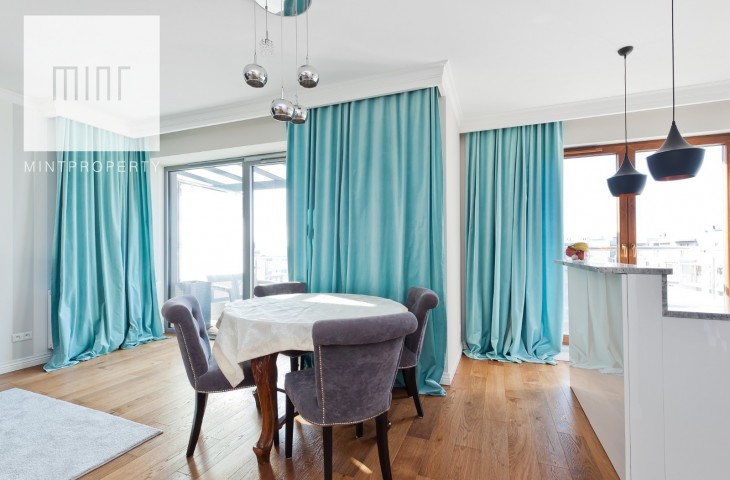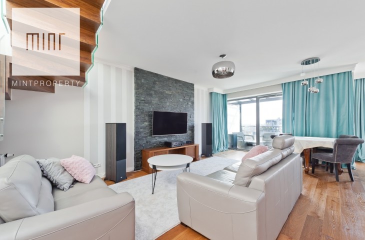 MINT Property przedstawia na wynajem luksusowy apartament o pow. 108 m2 położony na siódmym (ostatnim) piętrze kompleksu Wiślane Tarasy.