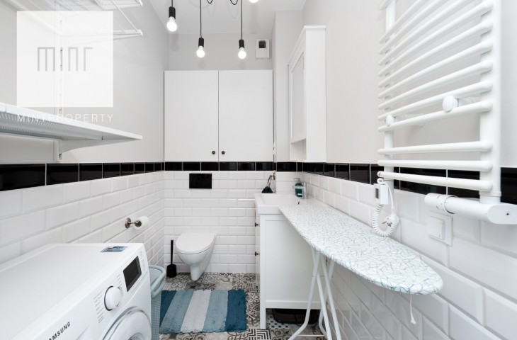 Mieszkanie jest wyposażone w wysokim standardzie. Pełne umeblowanie kuchni, łazienki oraz sypialni. Kuchnia wyposażona jest w lodówkę z zamrażarką, płytę grzewczą, piekarnik, okap i zmywarkę, mikrofalówkę. W mieszkaniu zainstalowano klimatyzację.