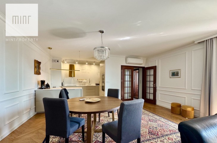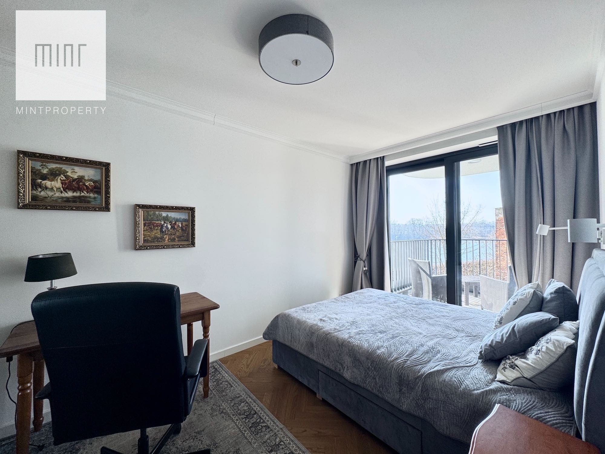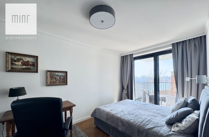 Niewątpliwym atutem nieruchomości jest nie tylko sama lokalizacja, ze wszystkimi jej dobrodziejstwami, ale przede wszystkim gwarancja widoku, jaką daje nam płynąca za oknami rzeka. Usytuowanie budynku przy ślepej części bulwarów zapewnia ciszę i spokój pod oknami apartamentu.