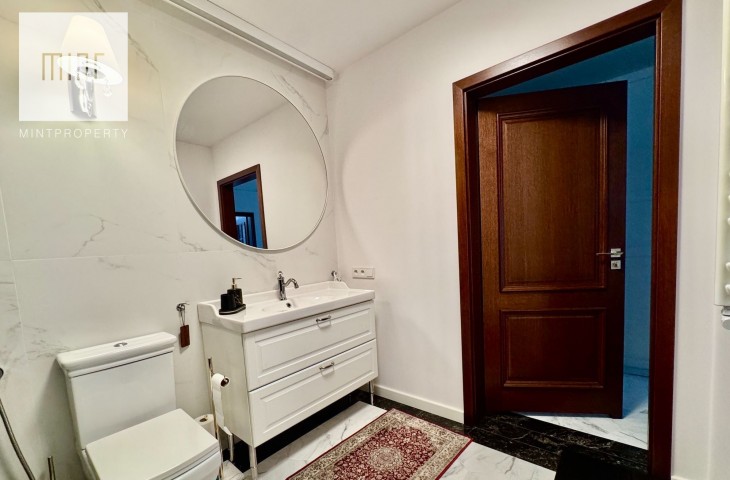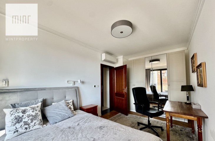 Do mieszkania przynależy balkon z którego rozpościera się widok na Wisłę. Mieszkanie jest urządzone w najwyższym standardzie. Posiada klimatyzację w salonie oraz sypialni. Ogrzewanie gazowe.