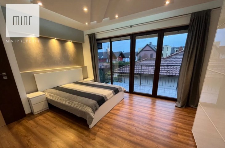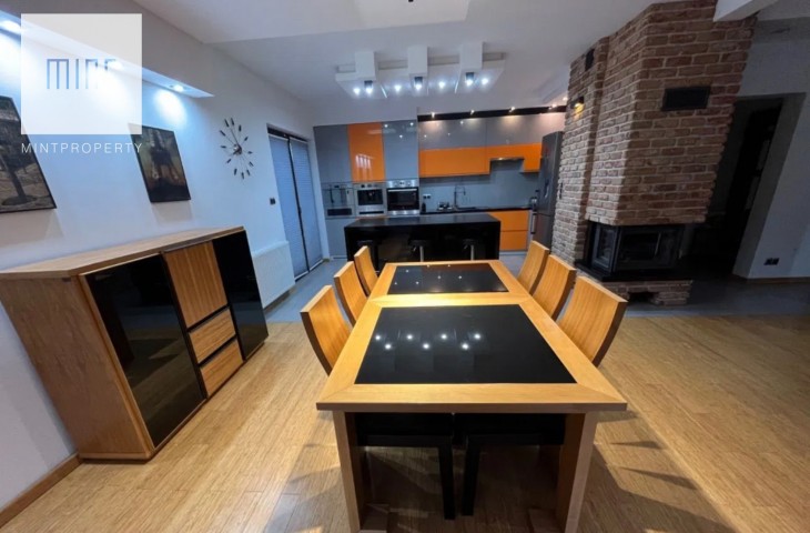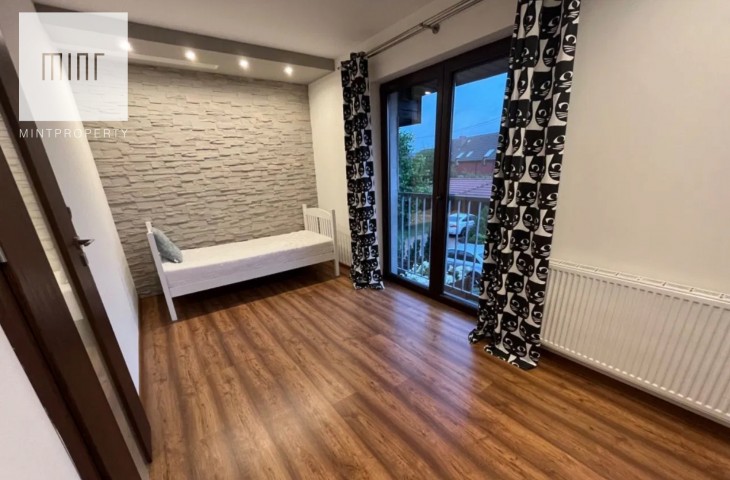 MINT PROPERTY przezentuje na wynajem dom w zabudowie bliźniaczej o powierzchni 160 m2 z ogródkiem i wiatą na samochód w Krakowie dzielnica Swoszowice. Pow. działki 301 m2. Dom jest wykończony w wysokim standardzie, umeblowany i wyposażony w sprzęt RTV/AGD, internet światłowodowy, TV satelitarną, klimatyzację oraz alarm. Oświetlenie w całości LED, dodatkowo podświetlenie sufitów i telewizora taśmami LED. W domu zainstalowana jest instalacja fotowoltaiczna 5kWp.