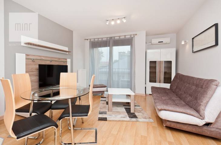 Do mieszkania przynależy balkon. Mieszkanie wykończone zostało w wysokim standardzie. Klimatyzacja.