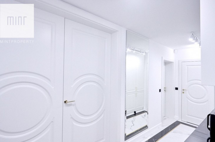• Drugie piętro: imponujący hall z wbudowanymi lustrzanymi szafami, dwie sypialnie, jadalnia z kuchnią oraz łazienka.