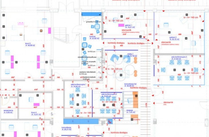 Lokal wykończony, zadbany, na posadzce wykładzina, posiada wydzielone przestrzenie pod stanowiska do pracy/salę konferencyjną, etc. oraz open space.