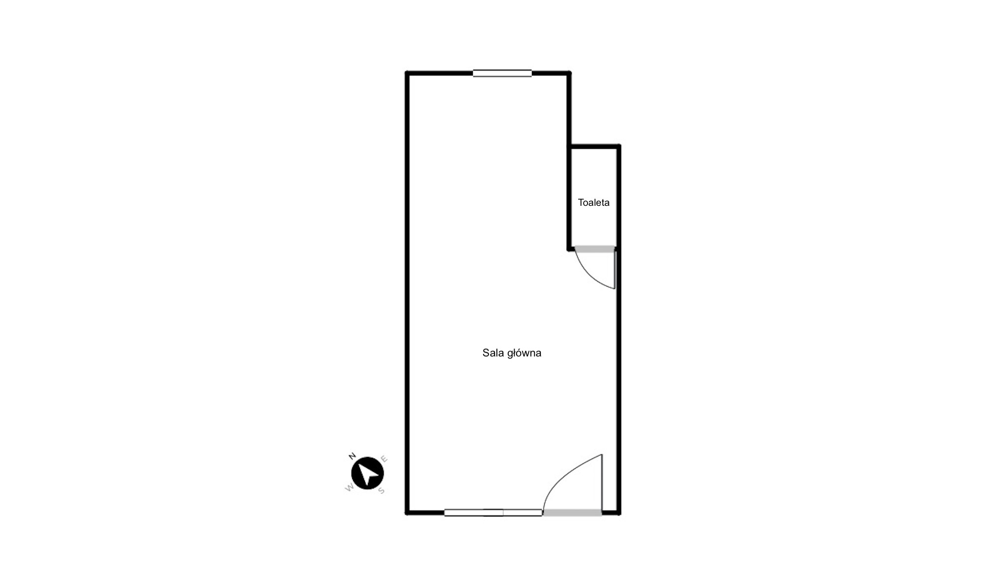 Lokal o powierzchni 40 m² składa się z dwóch pomieszczeń oraz toalety. Wysokie sufity nadają wnętrzu przestronności i umożliwiają dowolną aranżację.