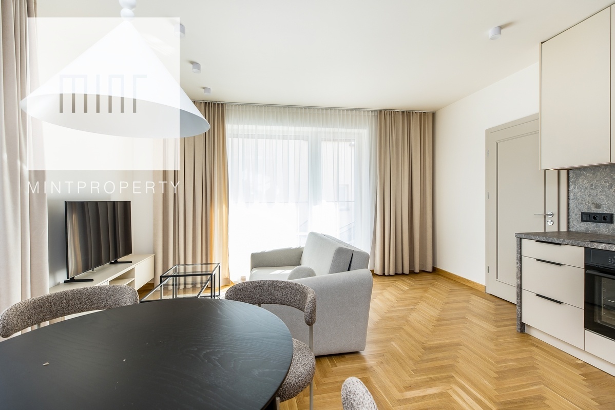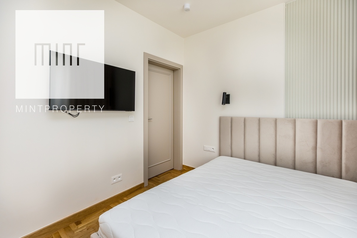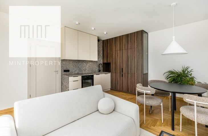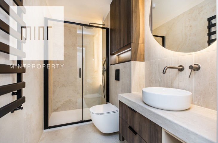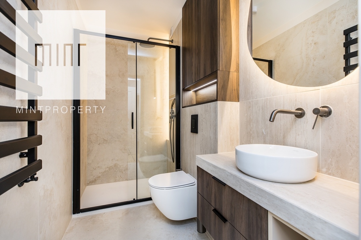 Mieszkanie zostało zaprojektowane przez architekta wnętrz i wykończone w wysokiej jakości materiałach. Na wyposażeniu min.: zmywarka, pralka, lodówka, TV, piekarnik itp.