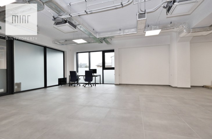 Lokal położony jest na parterze reprezentacyjnego budynku biurowo-usługowego, co gwarantuje świetną ekspozycję i łatwy dostęp dla klientów. Przestrzeń typu open space (z możliwością dowolnej aranżacji) została obecnie podzielona na dwa pomieszczenia i uzupełniona o zaplecze socjalne z toaletą. Wysokość pomieszczeń wynosi 3 m. Nowoczesne udogodnienia - klimatyzacja i system alarmowy - podnoszą komfort oraz bezpieczeństwo użytkowania.