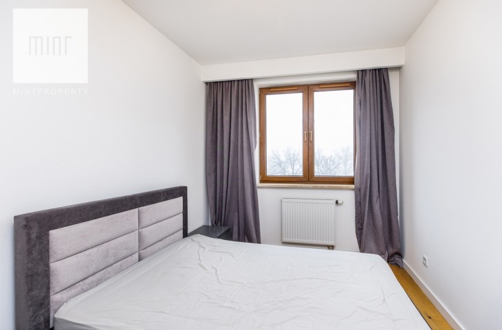 Dodatkowym atutem mieszkania jest balkon z ekspozycją południową, z którego rozpościera się piękny widok na Wisłę.