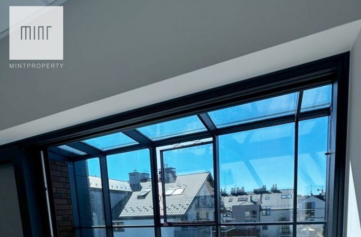 Taras 96 m2 będzie pełnił funkcję zimowego ogrodu - dlatego może być w pełni użytkowany przez cały rok. Elewacja budynku odnowiona.