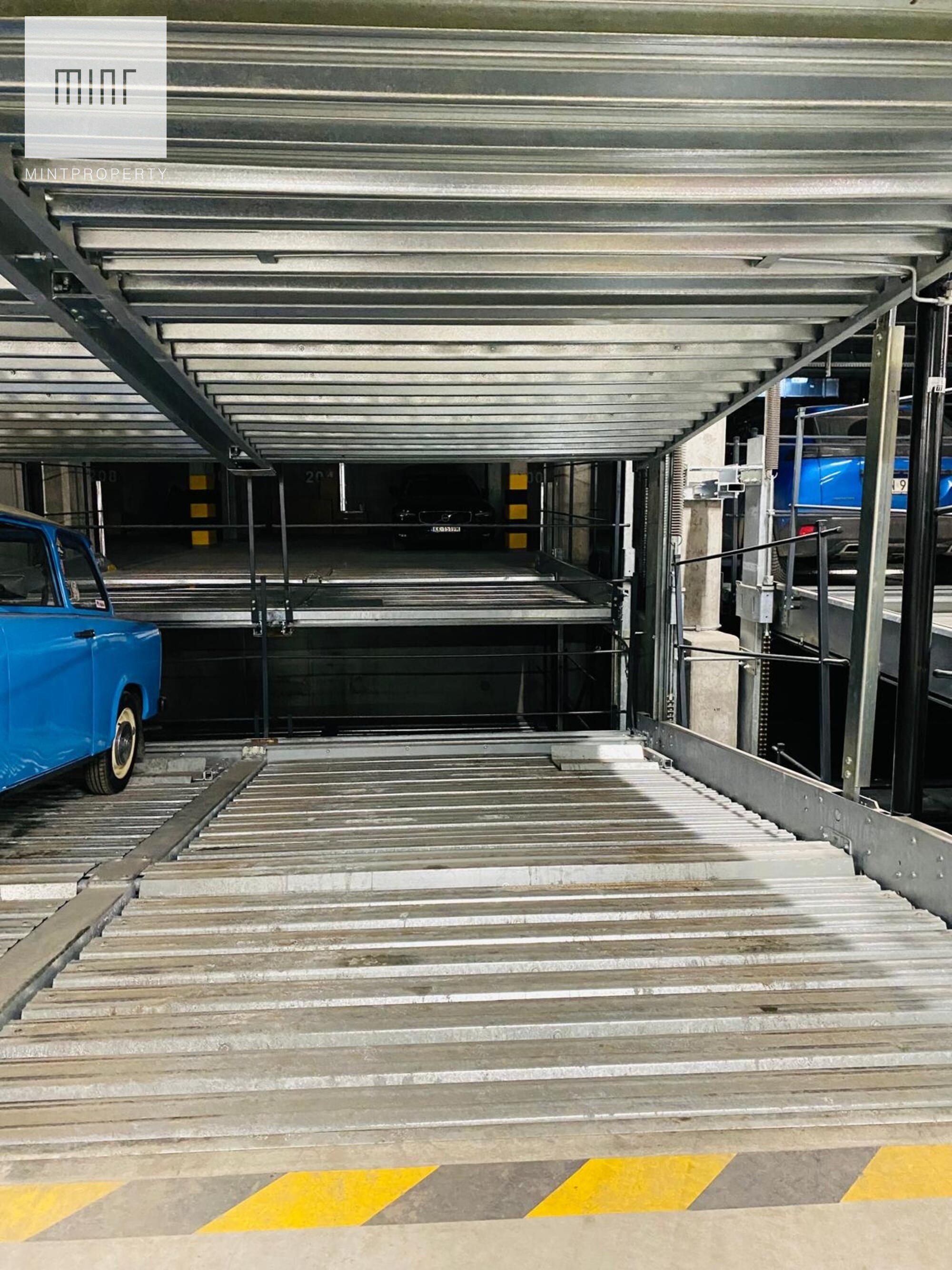 Do mieszkania przynależy również miejsce postojowe na platformie w garażu podziemnym oraz dwie komórki lokatorskie o powierzchni 3,40 m² i 3,23 m² za dodatkowa opłatą.