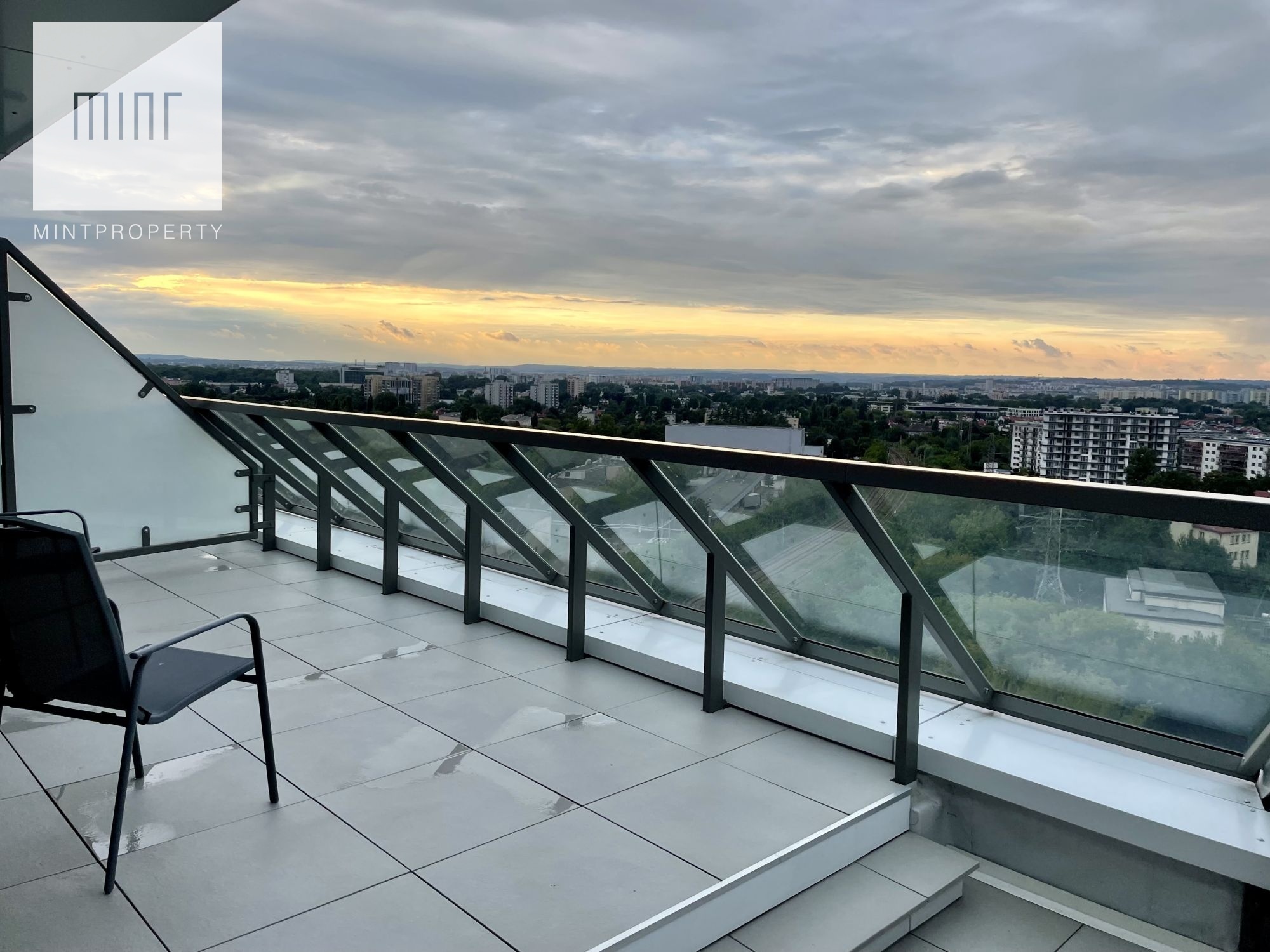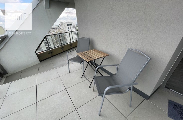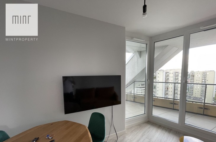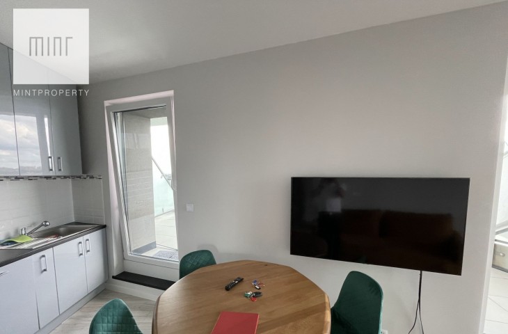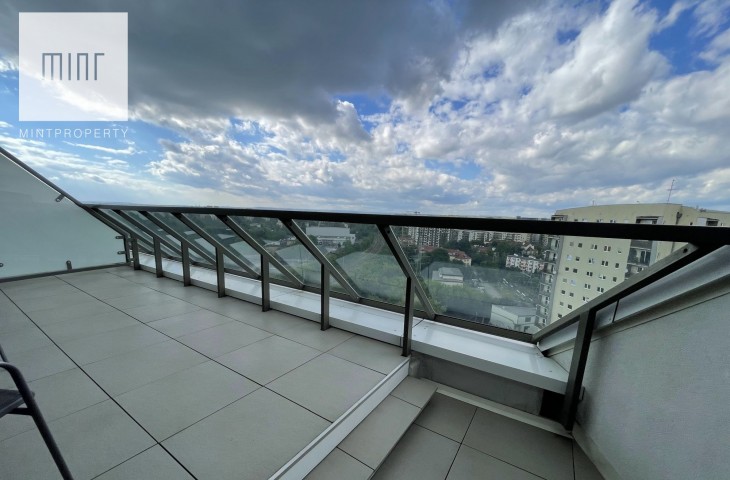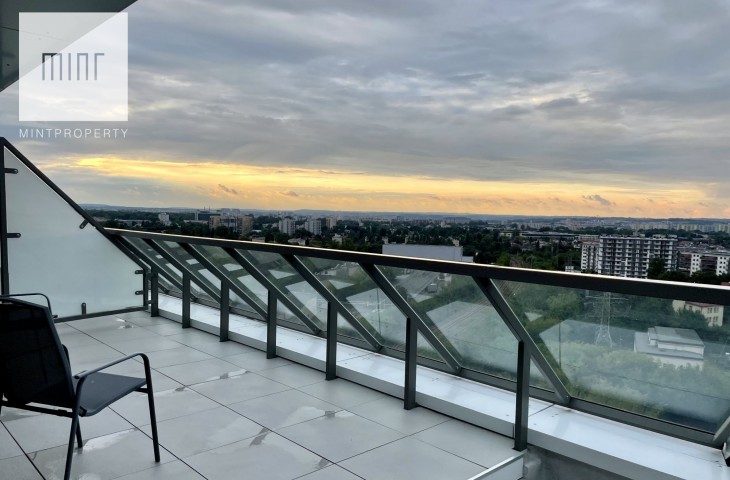 Mint Property ma przyjemność zaprezentować nowy apartament na wynajem przy ul. Mogilskiejw Krakowie w budynku Mogilska Tower. Bardzo jasne mieszkanie, które ma powierzchnię 44 m2, dwa pokoje, 40-metrowy widokowy taras i dodatkowo balkon w sypialni.
