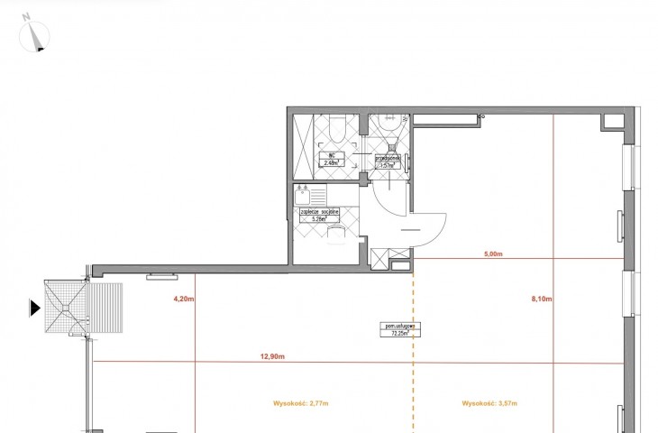 Lokal zlokalizowany jest przy głównej ulicy osiedla, w ciągu handlowym, z łatwym dostępem do komunikacji miejskiej oraz o dużym zagęszczeniu mieszkańców. Nieruchomość składa się z przestronnej części głównej o powierzchni 72,25 m² oraz części socjalnej wraz z toaletą o powierzchni 9,31 m².