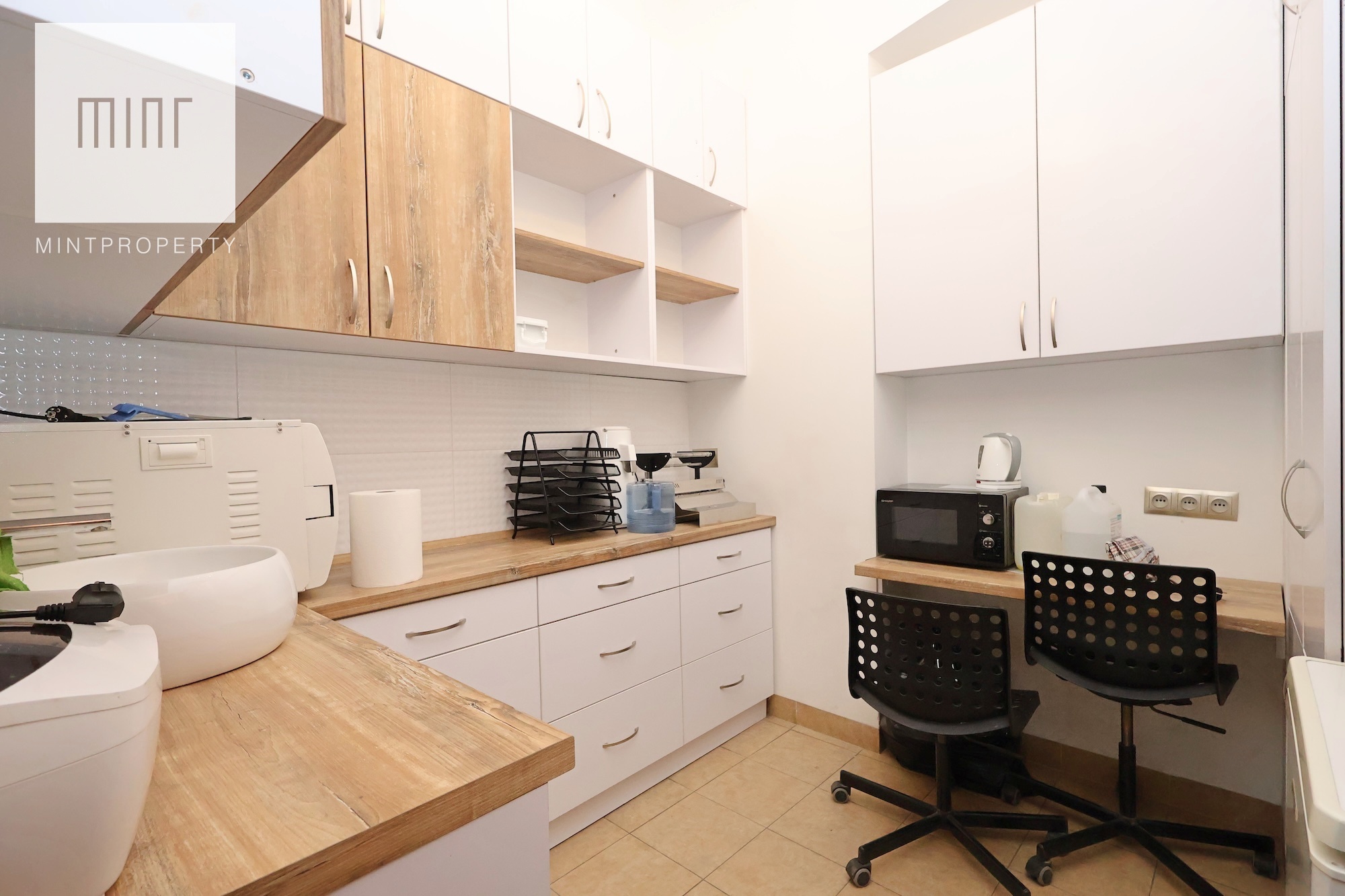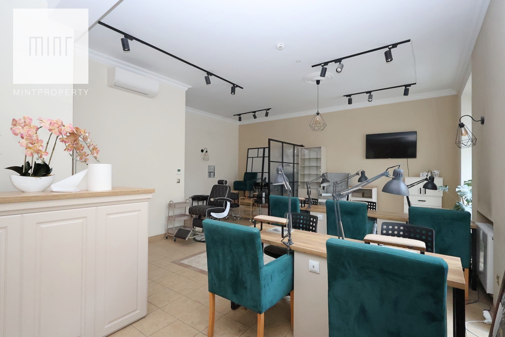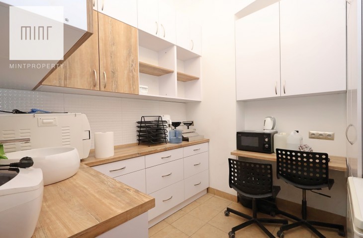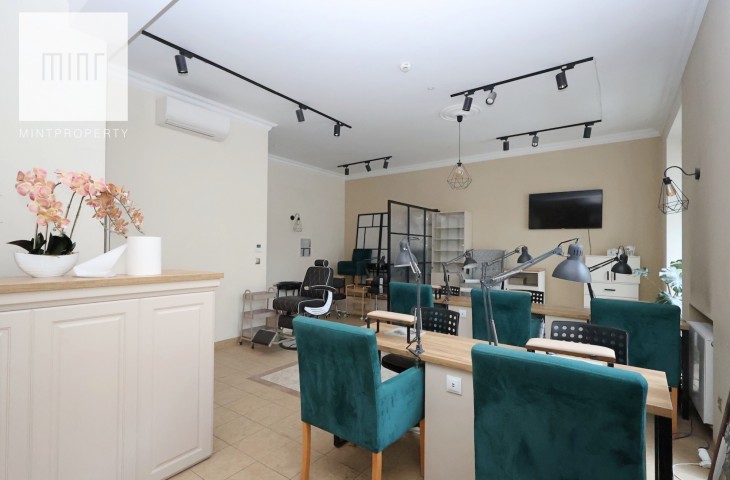 Przestrzeń jest obecnie w pełni wyposażona i przystosowana do prowadzenia działalności kosmetycznej, co czyni ją gotowym rozwiązaniem pod gabinet kosmetyczny, salon fryzjerski lub innego rodzaju gabinet specjalistyczny. Jednocześnie istnieje pełna możliwość zmiany wyposażenia oraz dostosowania aranżacji wnętrza do indywidualnych preferencji i potrzeb nowego najemcy.