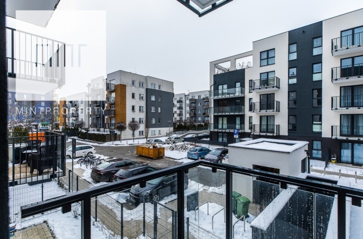 Mieszkanie o powierzchni 32 m2 znajduje się na pierwszym piętrze niskiego, nowoczesnego bloku z 2024 r. z windą i składa się z:
