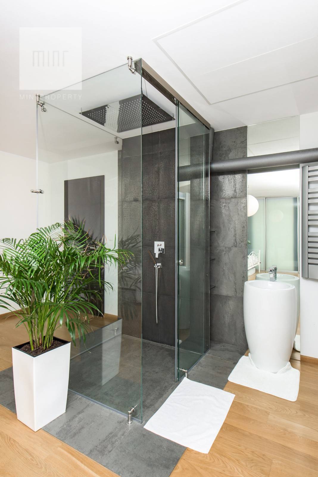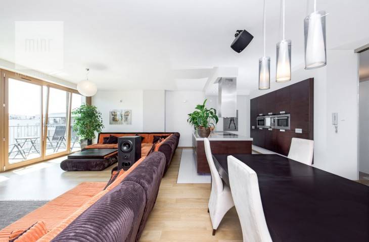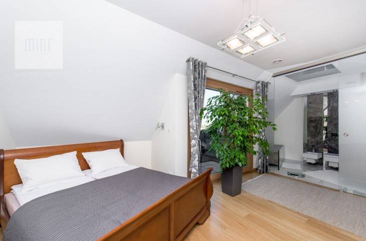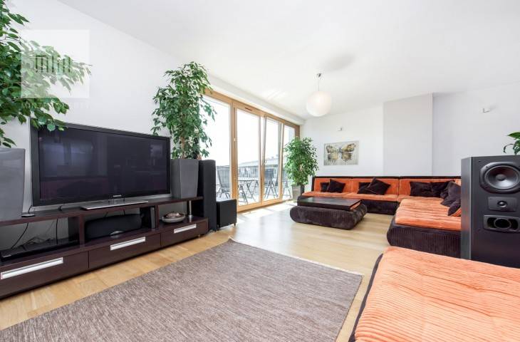 Niewątpliwym atutem mieszkania jest winda wjeżdżająca bezpośrednio do mieszkania oraz zjeżdżająca do parkingu podziemnego.