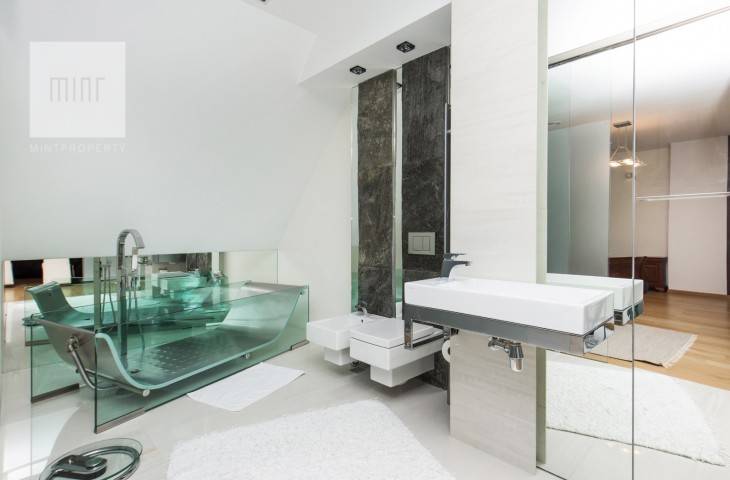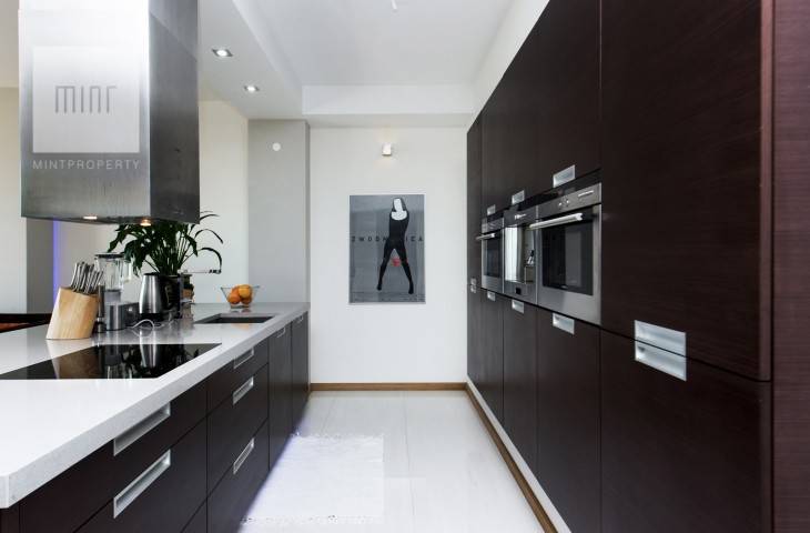Mieszkanie wykończone według indywidualnego projektu, wyposażone w ekskluzywny sprzęt, posiada klimatyzację.