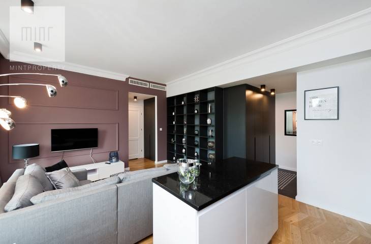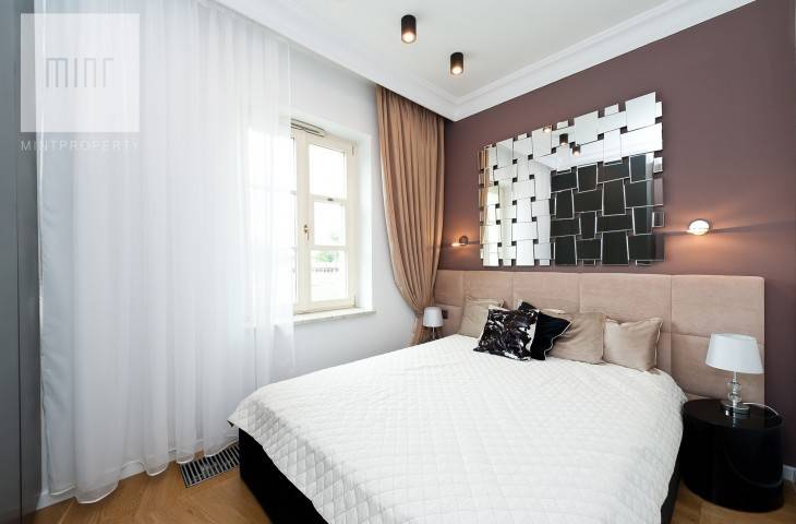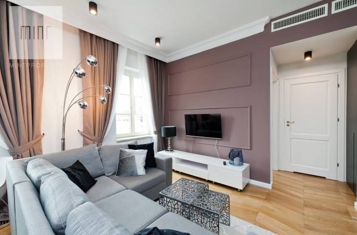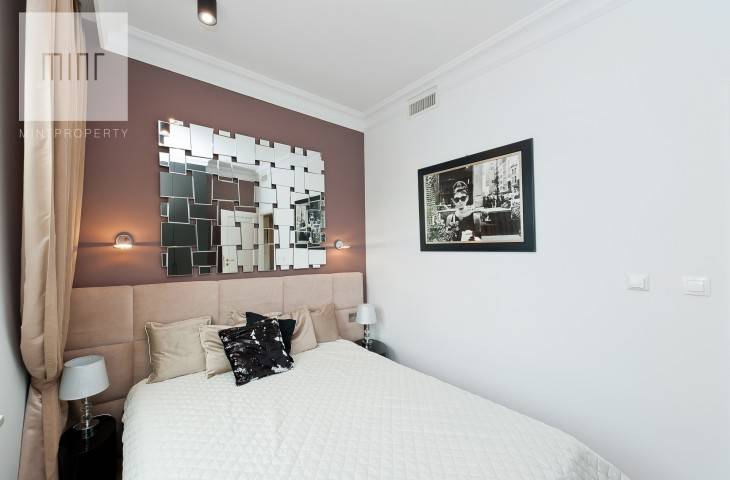 Prezentowany apartament znajduje się na 2 piętrze w 5-piętrowym budynku. Apartament o pow. 45 m2, składa się z salonu z aneksem kuchennym, sypialni, łazienki z prysznicem. Z salonu i sypialni rozpościera się widok na panoramę miasta. Mieszkanie w pełni umeblowane i wyposażone w bardzo wysokim standardzie. Kuchnia wyposażona jest w meble i sprzęt AGD (lodówko-zamrażarka, płyta indukcyjna, piekarnik elektryczny, okap, zmywarka, czajnik, sztućce, garnki, patelnie), sypialnia wyposażona w podwójne łóżko z dodatkowym kompletem pościeli i ręczników. W mieszkaniu klimatyzacja.