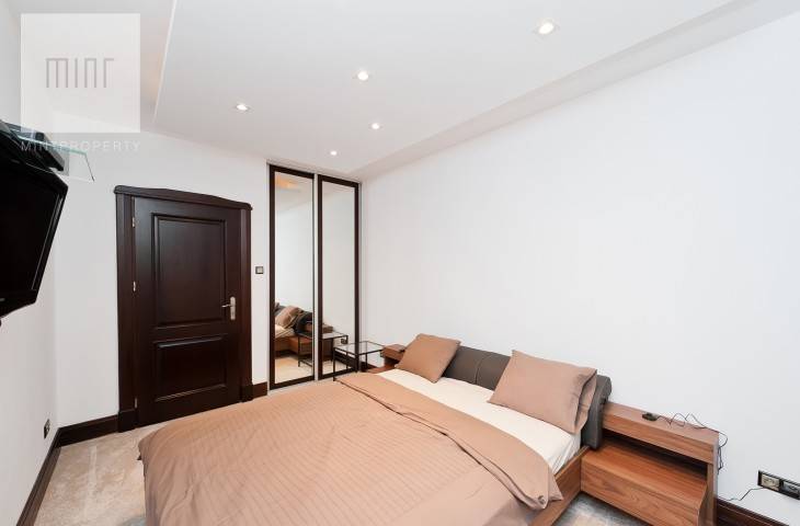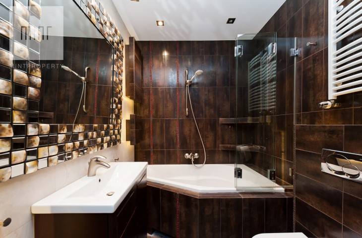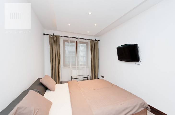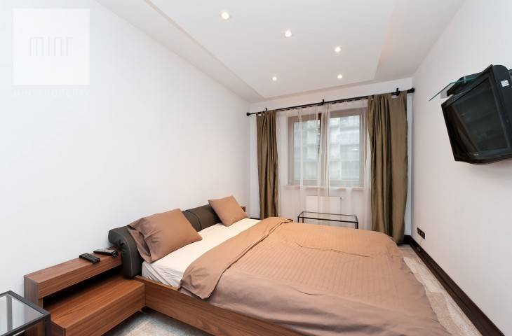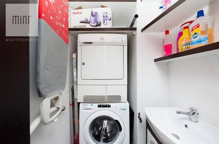 Mieszkanie jest umeblowane i wyposażone, w wysokim standardzie. W kuchni płyta grzewcza, piekarnik, mikrofalówka, lodówka z zamrażarką, zmywarka i okap. W mieszkaniu klimatyzacja oraz suszarka elektryczna do ubrań, młynek do odpadów.