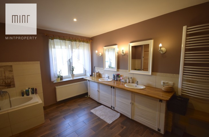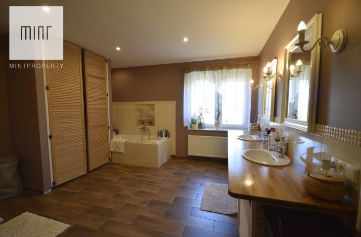 Dom ma powierzchnię ok. 530 m2, składa się z piwnicy i 2 pięter. Gotowy do zamieszkania, w pełni wyposażony, centralne ogrzewanie.