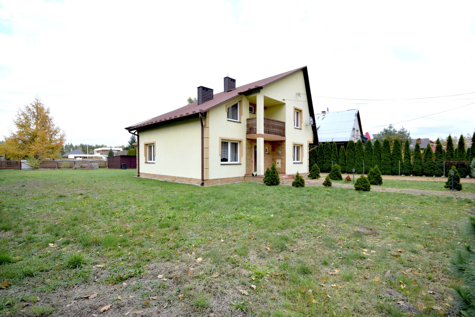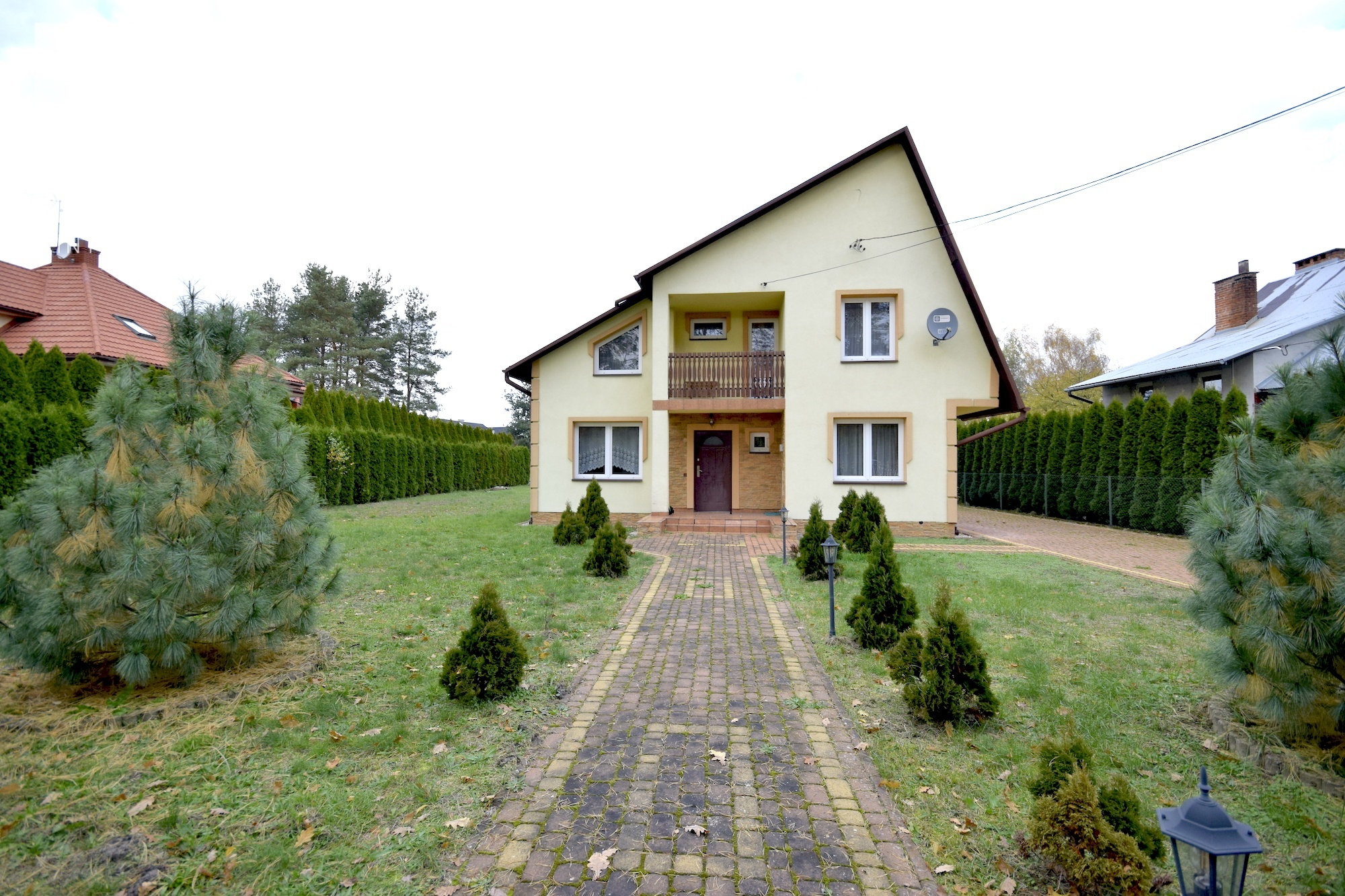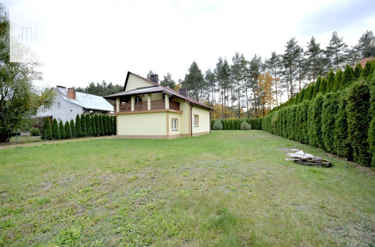 Dom usytuowany jest na zadbanej działce o wielkości 13a, porośniętej krzewami oraz drzewkami.