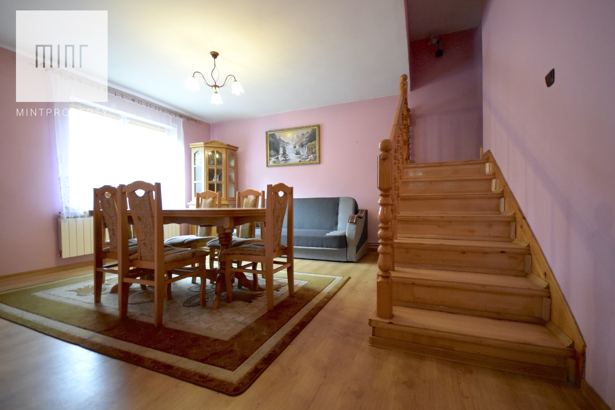 - Piętro: 2 pokoje z wyjściem na balkon, łazienka, korytarz z wyjściem na balkon oraz jedeno duże pomieszczenie do zaadaptowania.