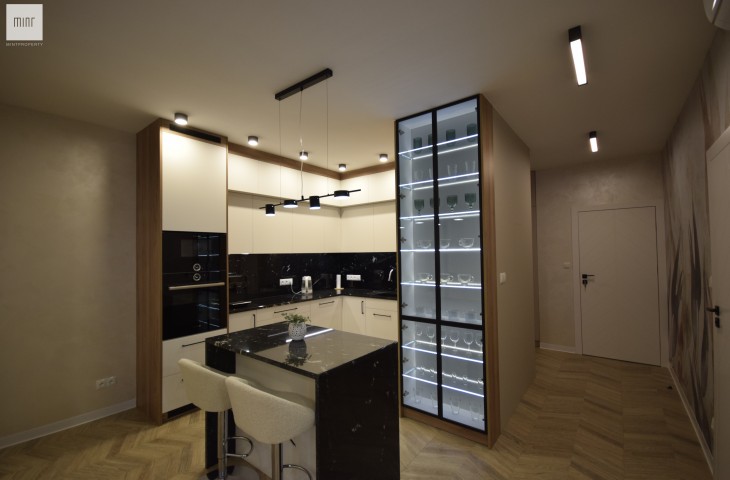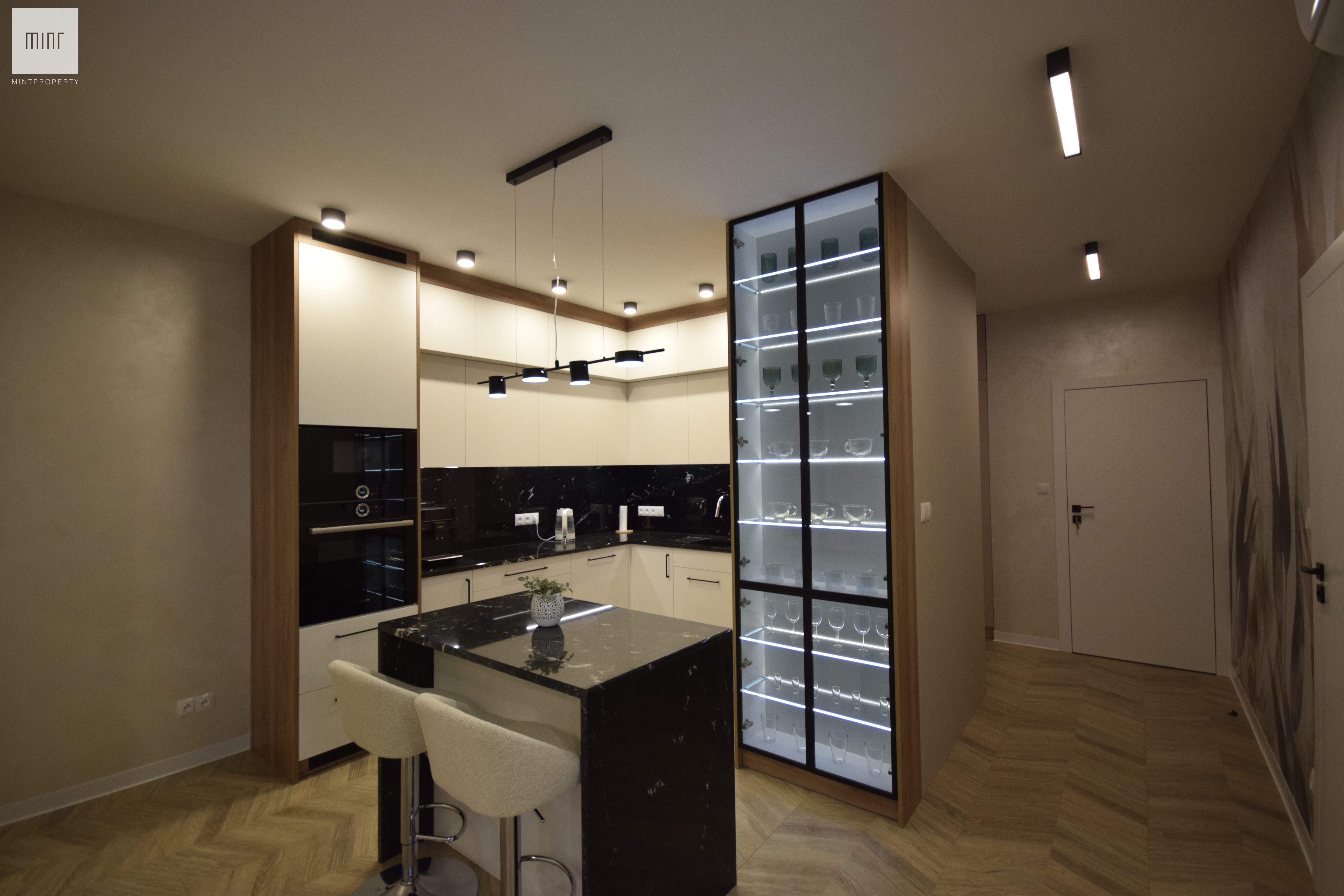 - Nowoczesna kuchnia z pełnym wyposażeniem: lodówka, zamrażarka, zmywarka, piekarnik z mikrofalą, płyta indukcyjna, okap