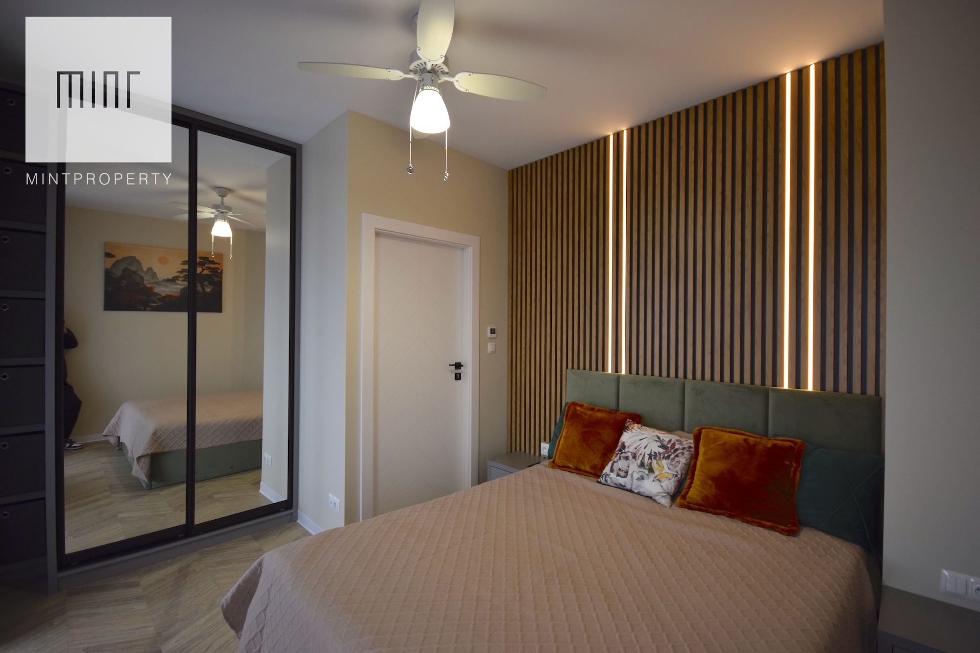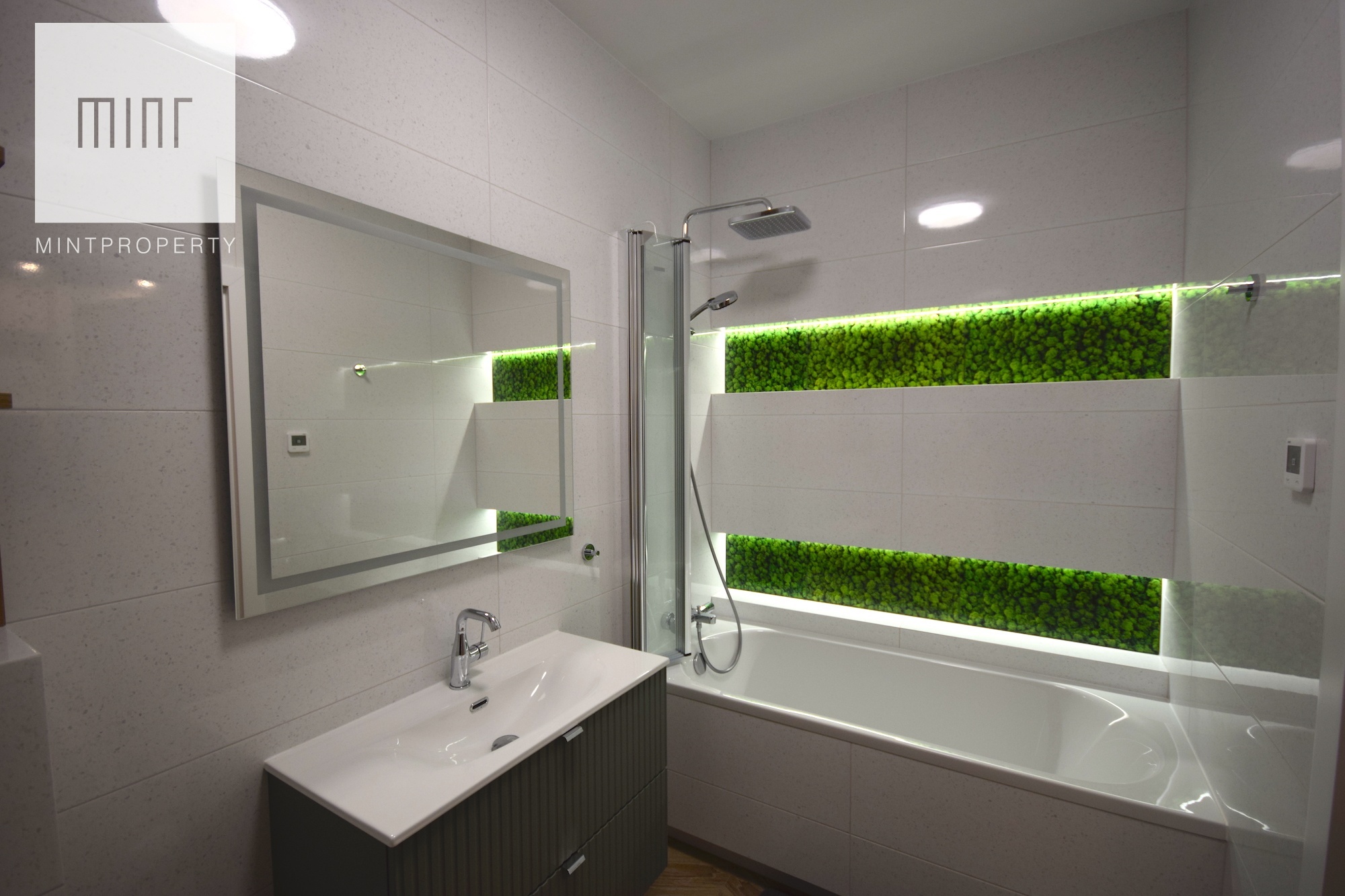Mieszkanie wyposażone jest w klimatyzację, ogrzewanie podłogowe oraz instalację sieci LAN.