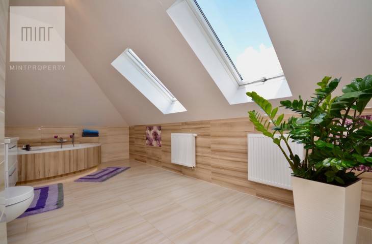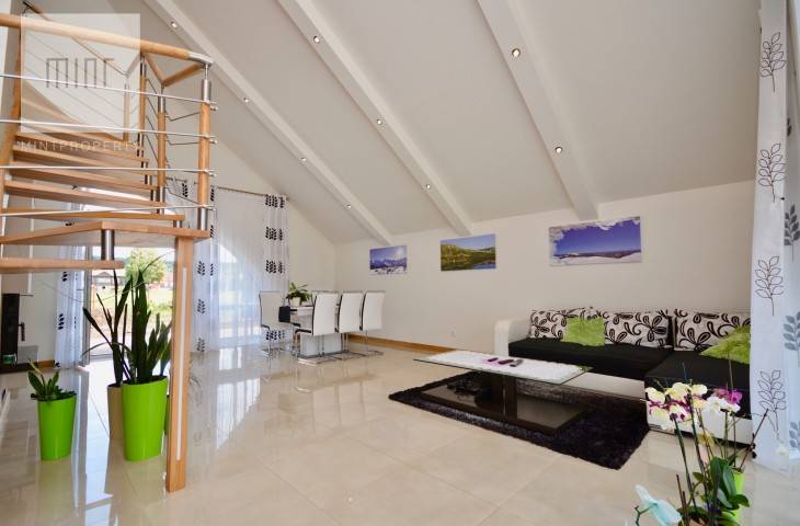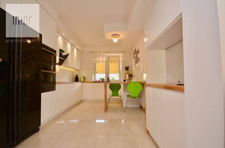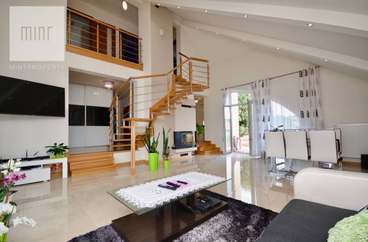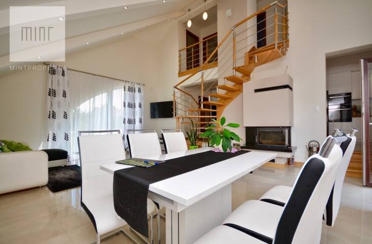 Nieruchomość o powierzchni 144 m2 składa się z obszernego salonu o powierzchni około 37 m2, osobnej jasnej kuchni, czterech niezależnych pokoi ( jeden z nich stanowi garderobę ) dwóch łazienek, kotłowni oraz przedpokoju. Działka kształtem zbliżona do kwadratu o powierzchni 8,27 ara.