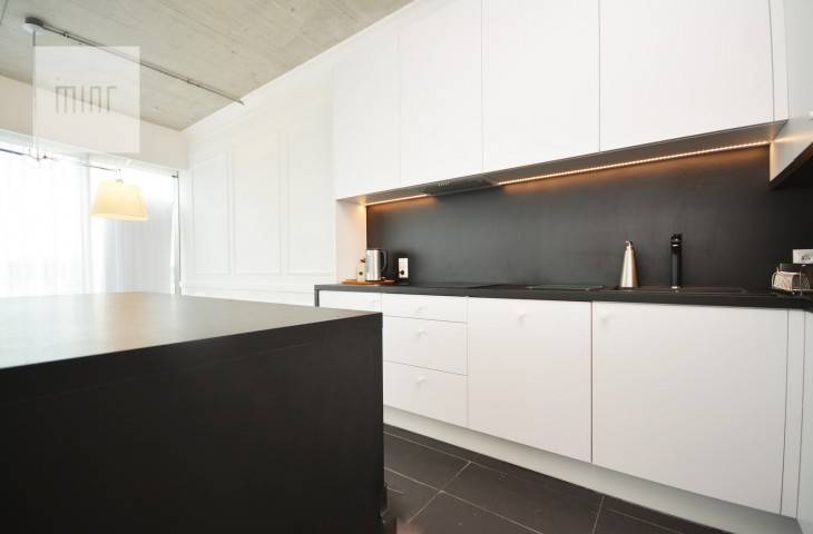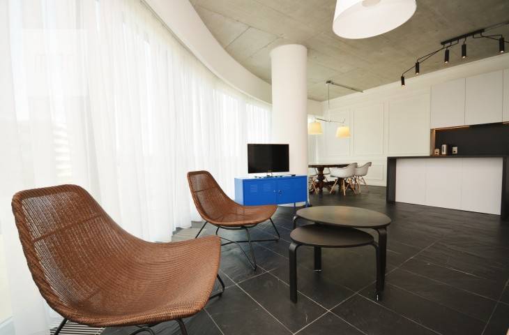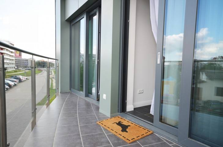 Apartament wyposażony jest w niezbędny sprzęt RTV-AGD w tym zmywarka, kuchenka, piekarnik, lodówka, TV itp. Całość wykończona w wysokiej jakości materiałach, zapewnia komfort i wygodę codziennego użytkowania.