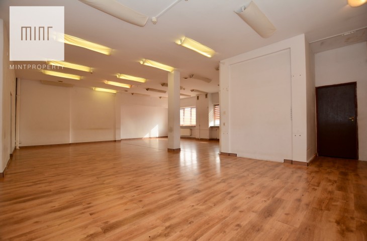 Nieruchomość o powierzchni 166,76 m2 składa się z jednego obszernego otwartego pomieszczenia, oraz czterech mniejszych, łazienki, oddzielnego WC, hallu i mieści się na 3 piętrze w kamienicy z lat 70-tych ubiegłego wieku. Lokal można dowolnie zaadoptować. Nieruchomość nadaje się na różnego rodzaju biura, kancelarie itp. i jest gotowa do wynajęcia od zaraz. Istnieje możliwość zawieszenia reklamy wewnątrz lokalu.